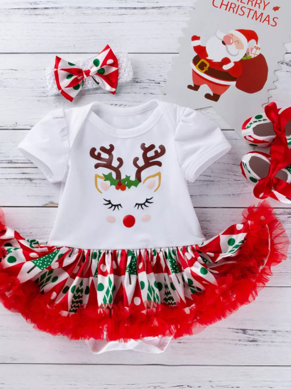 Children's 3 Piece Christmas Reindeer One-Piece Dress