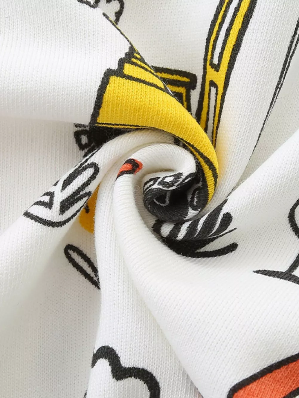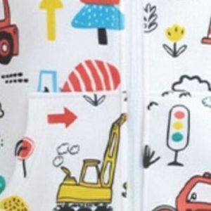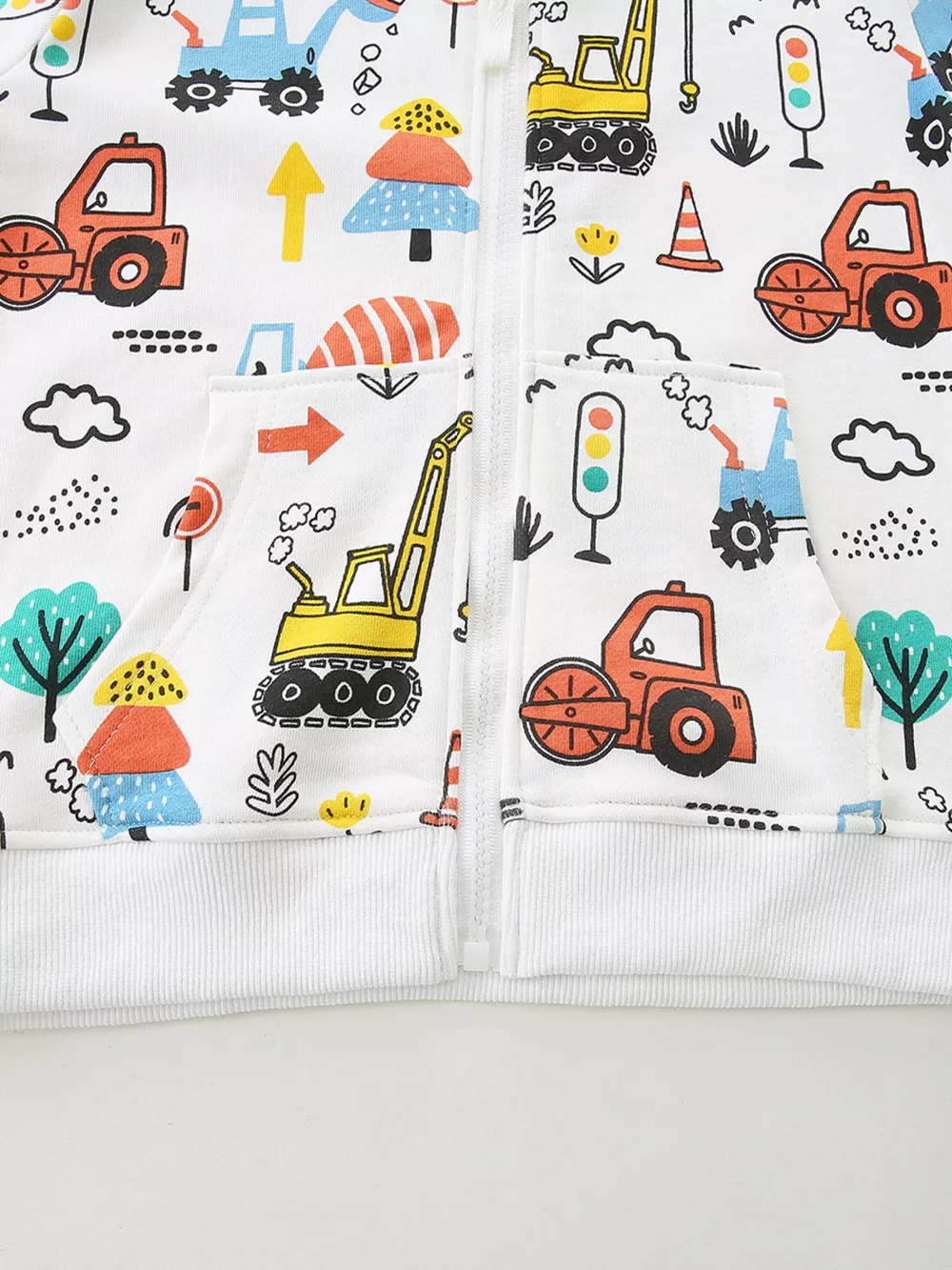 Children's Cartoon Construction Vehicle Print Zip-Up Jacket