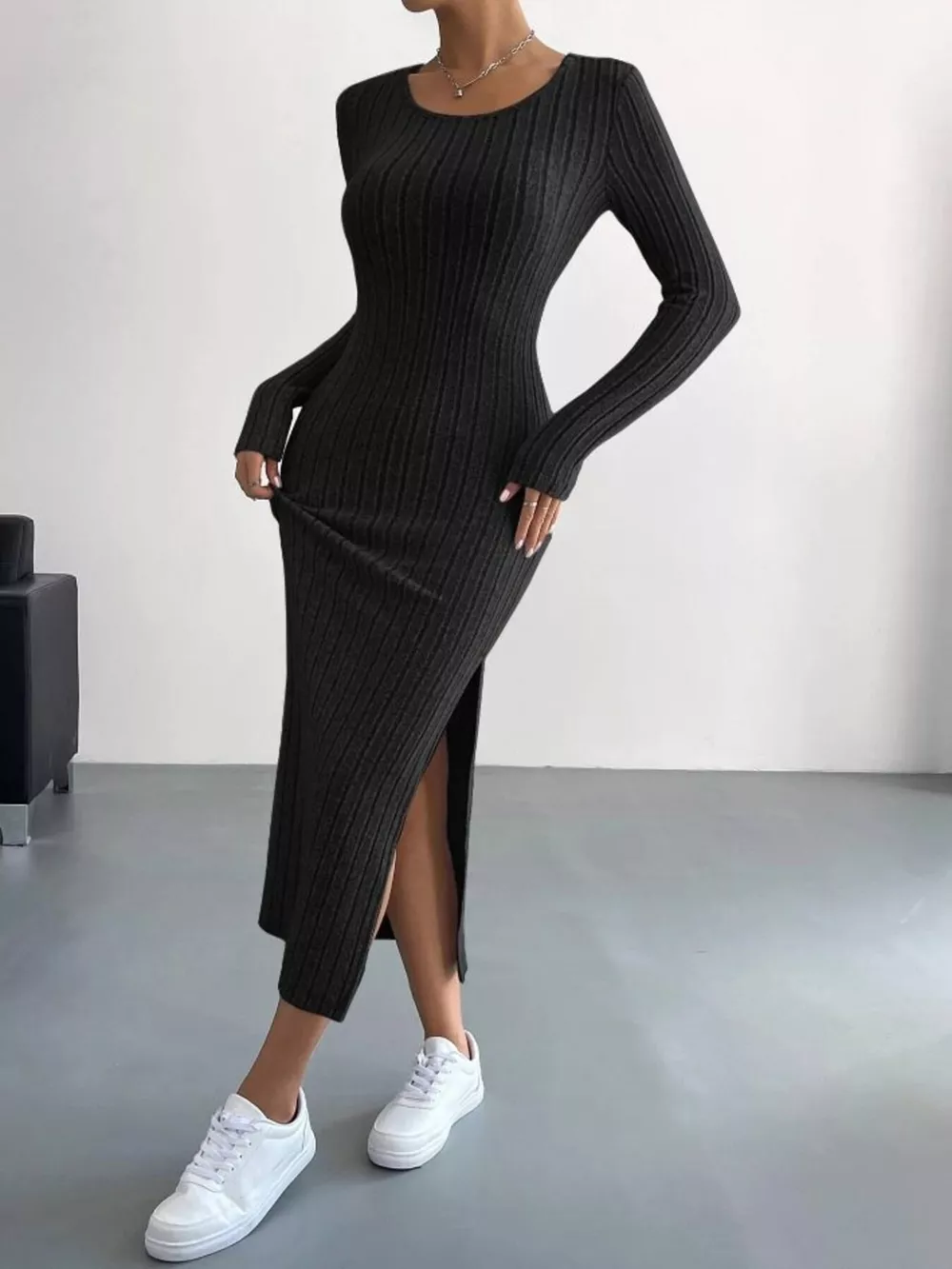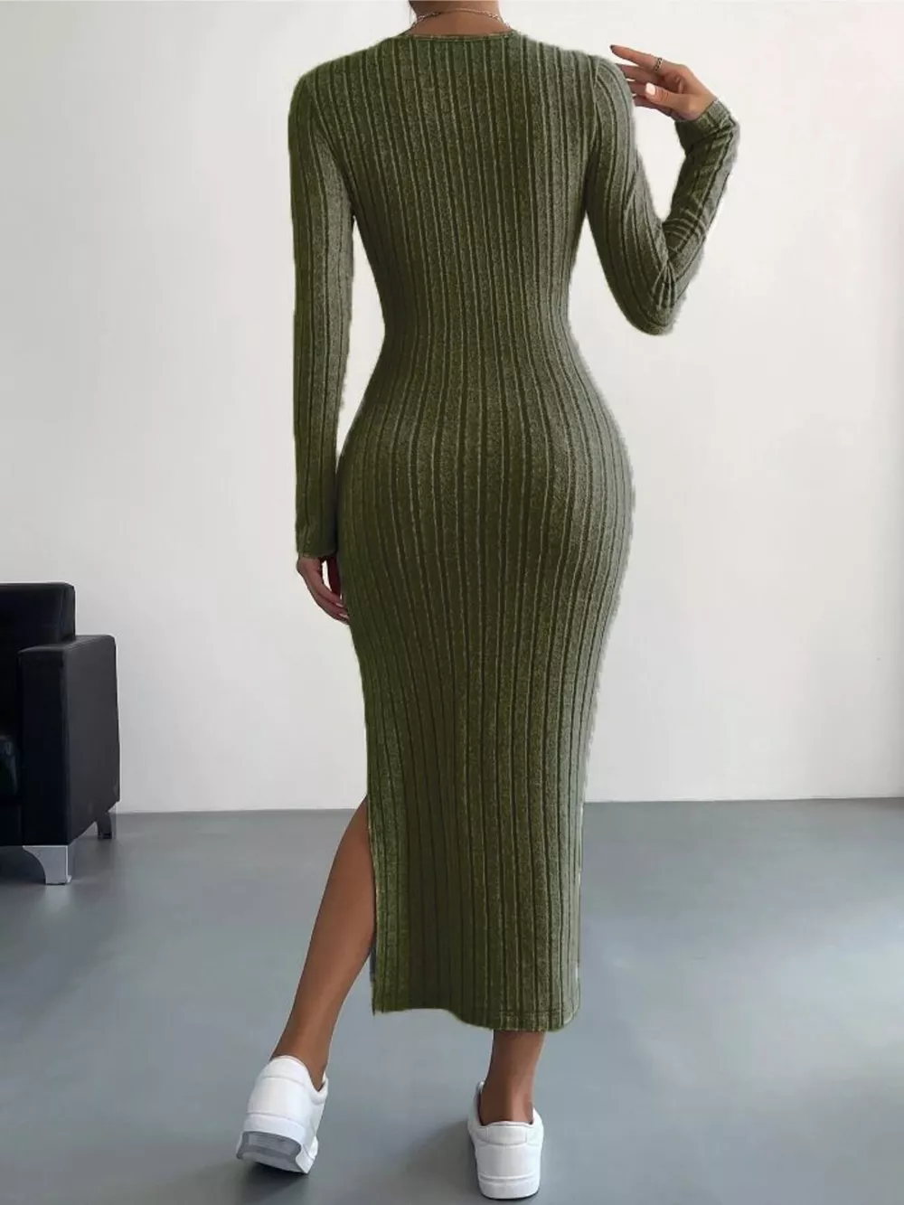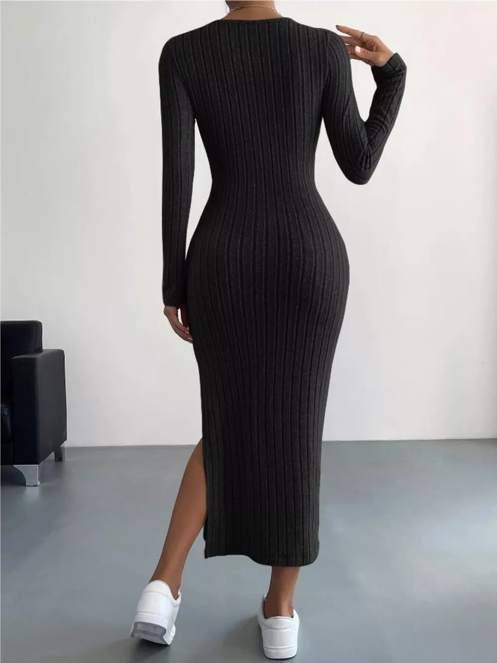Full Size Ribbed Knit Bodycon Midi Dress Plus Size