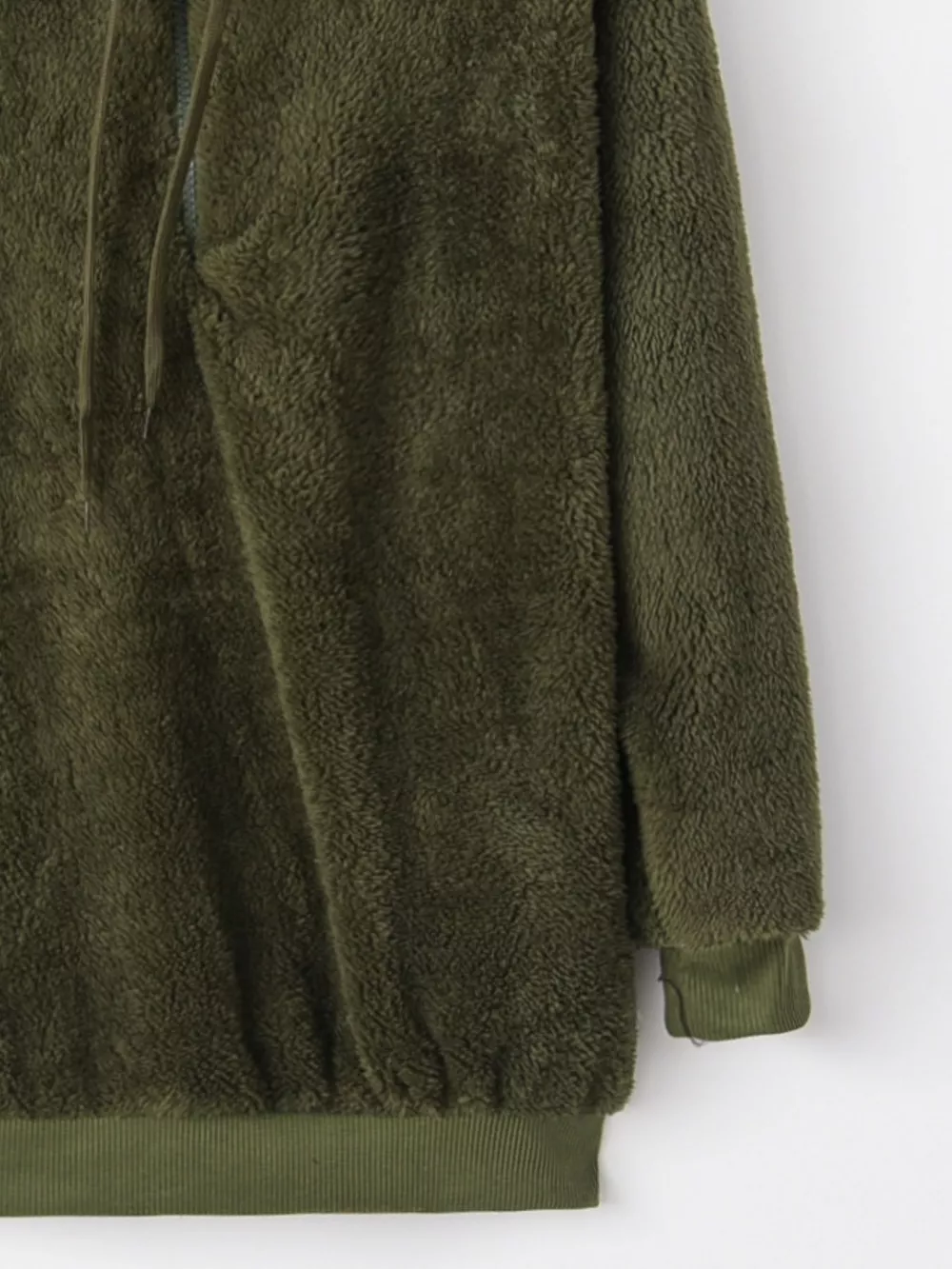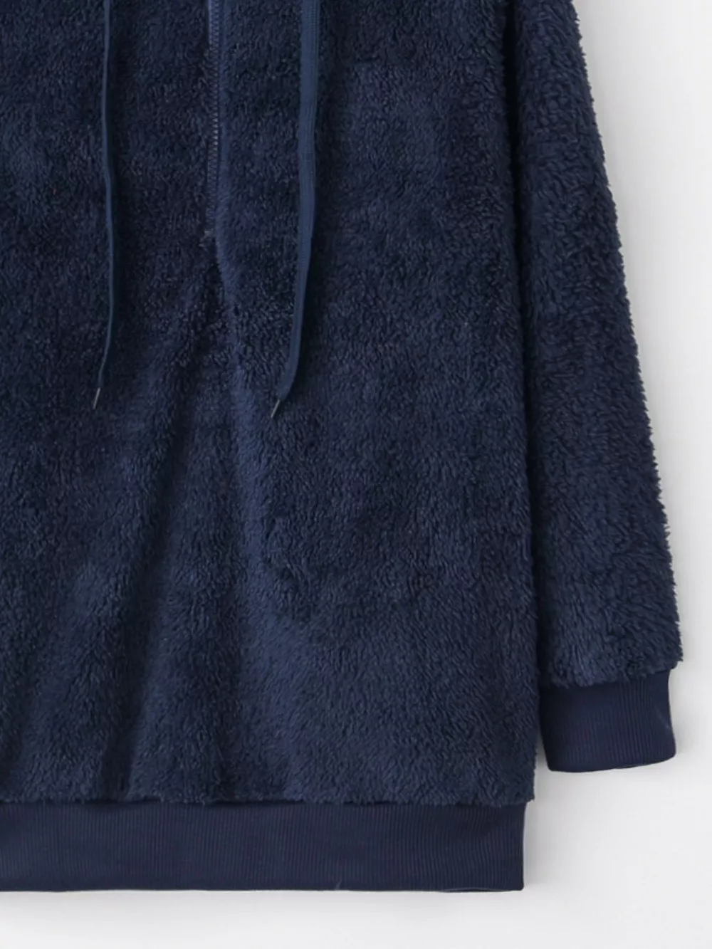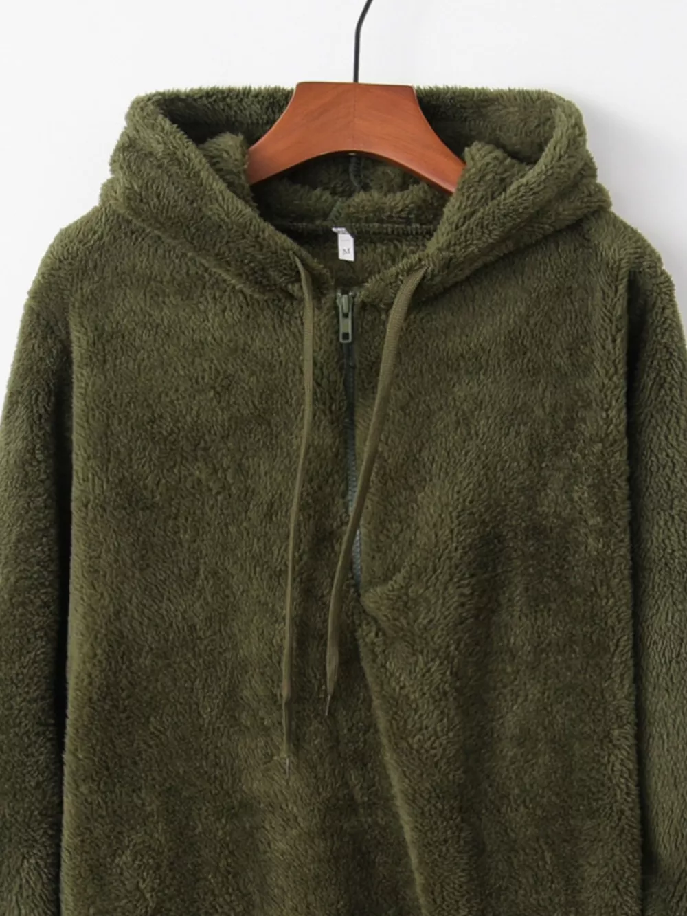 Full Size Half Zip Drawstring Fleece Hoodie Plus Size
