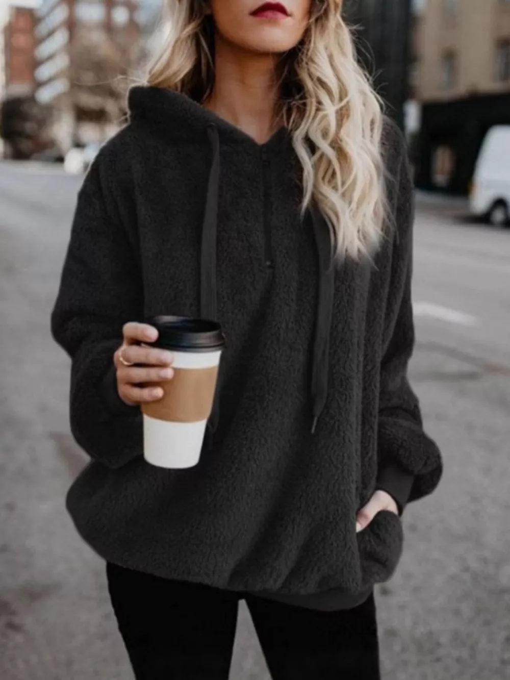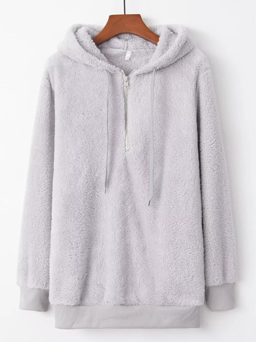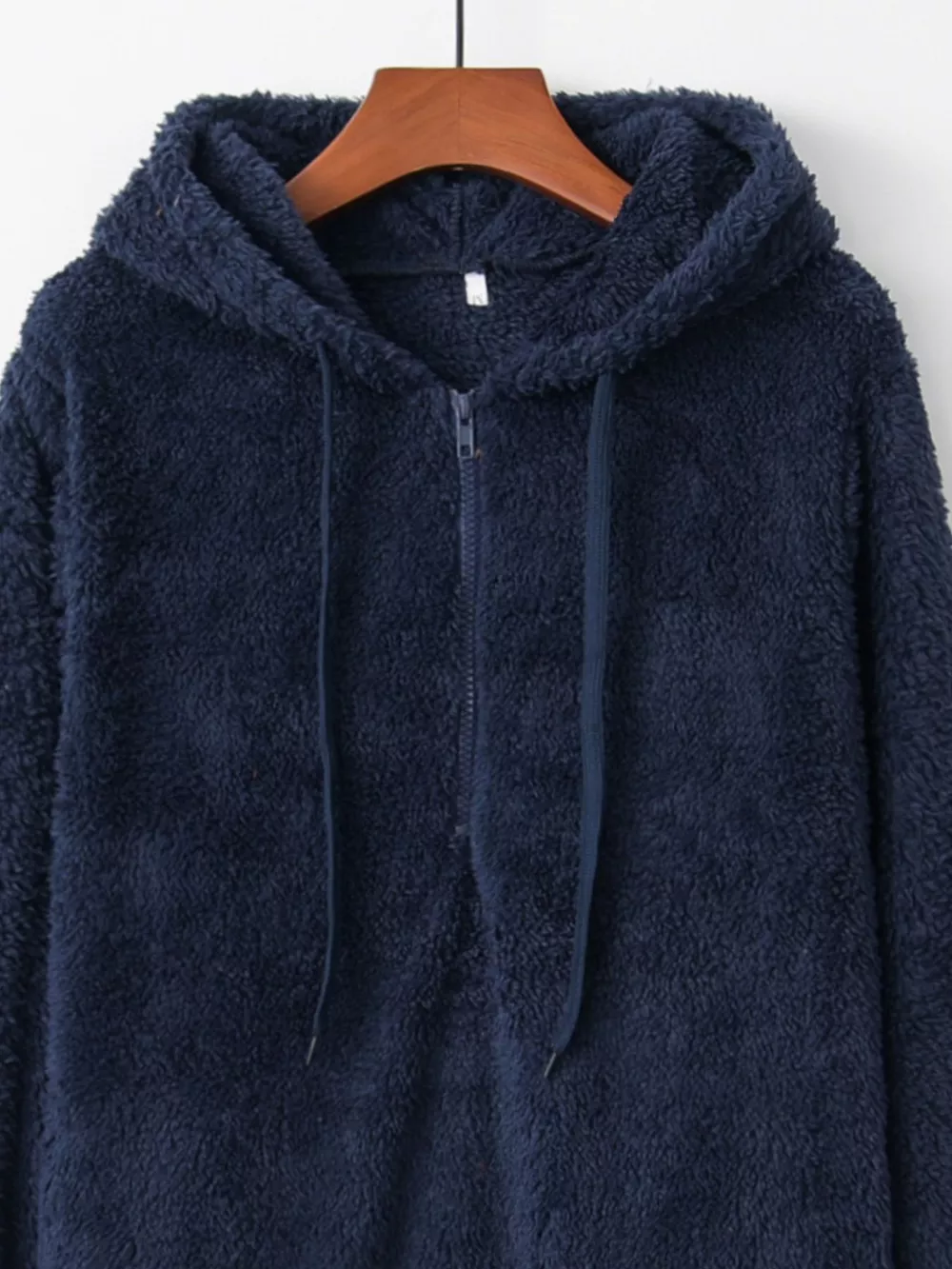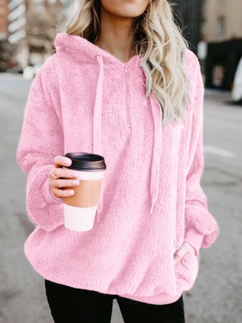 Full Size Half Zip Drawstring Fleece Hoodie Plus Size