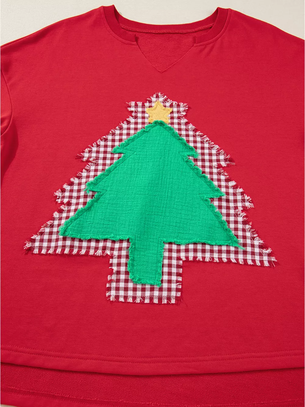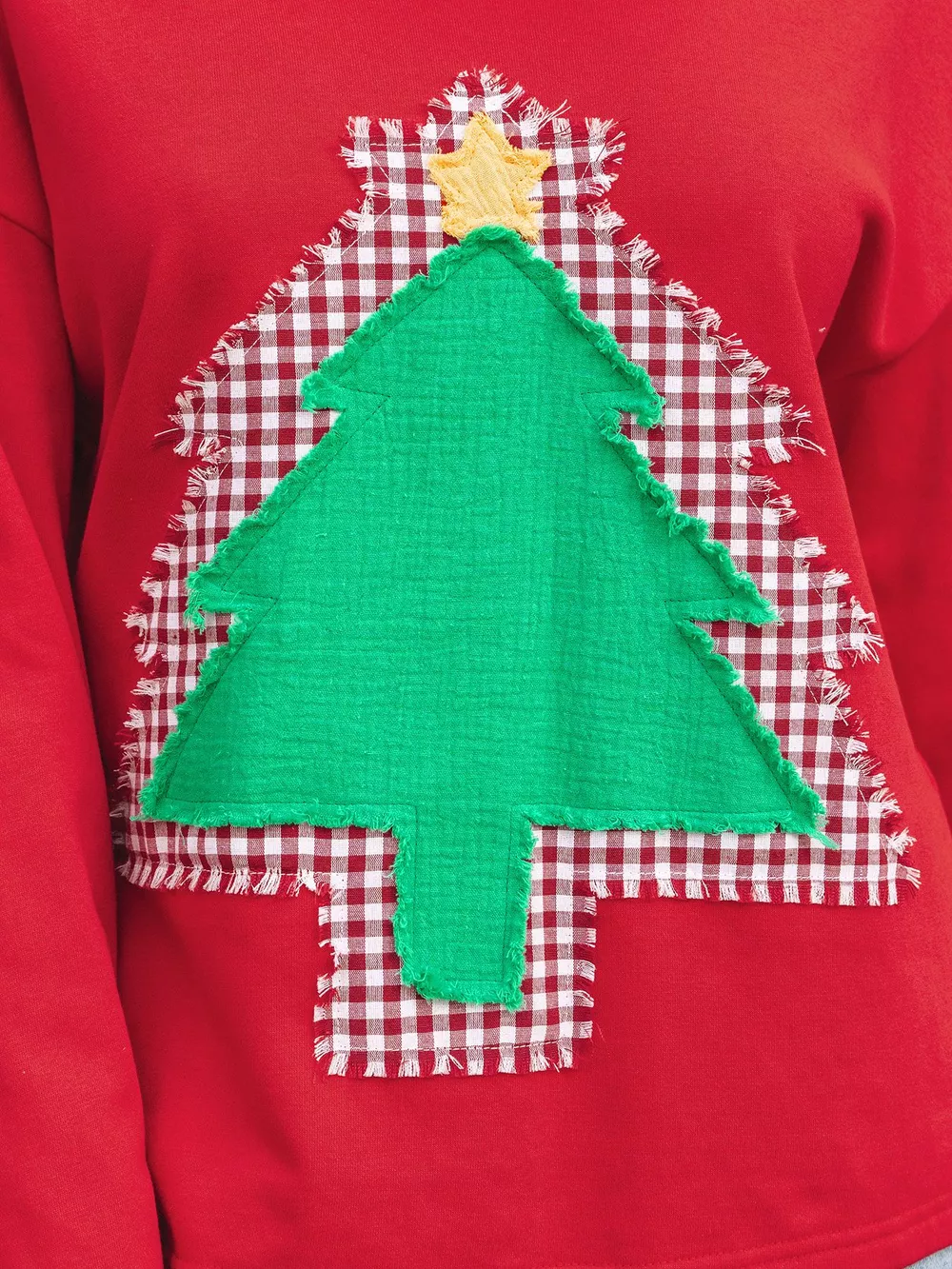 Plaid Frayed Double Christmas Tree Patched Drop Shoulder Sweatshirt