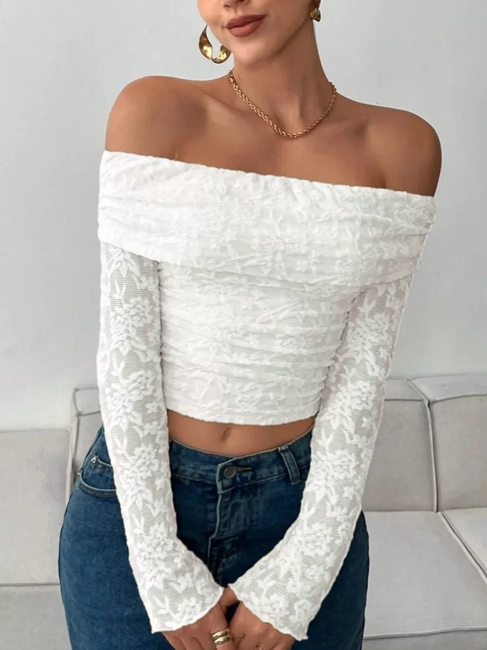 Lace Off-Shoulder Long Sleeve Top
