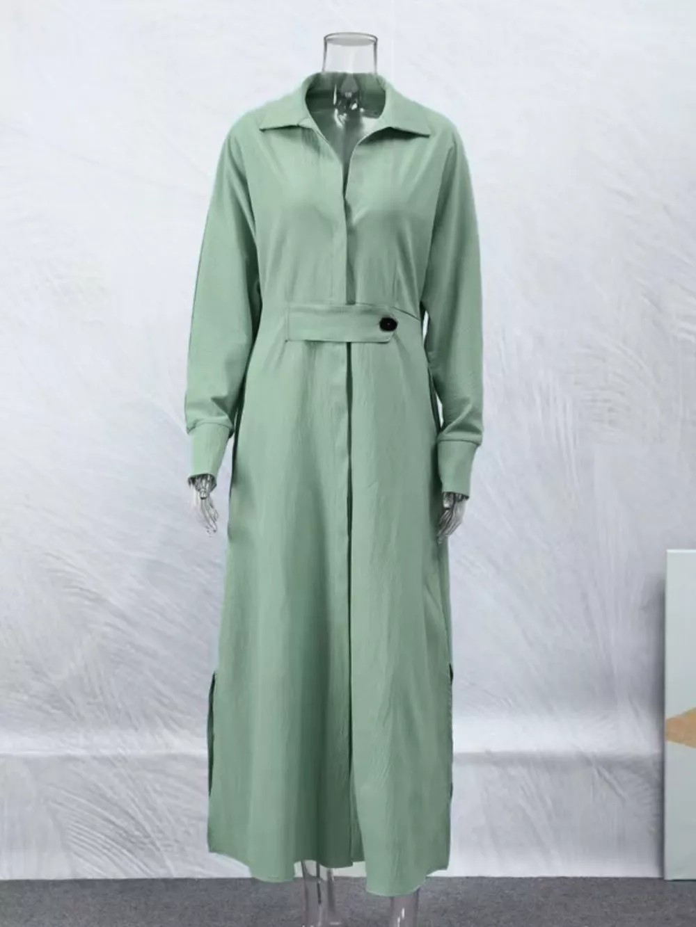 Side Slit Long Sleeve Shirt Dress
