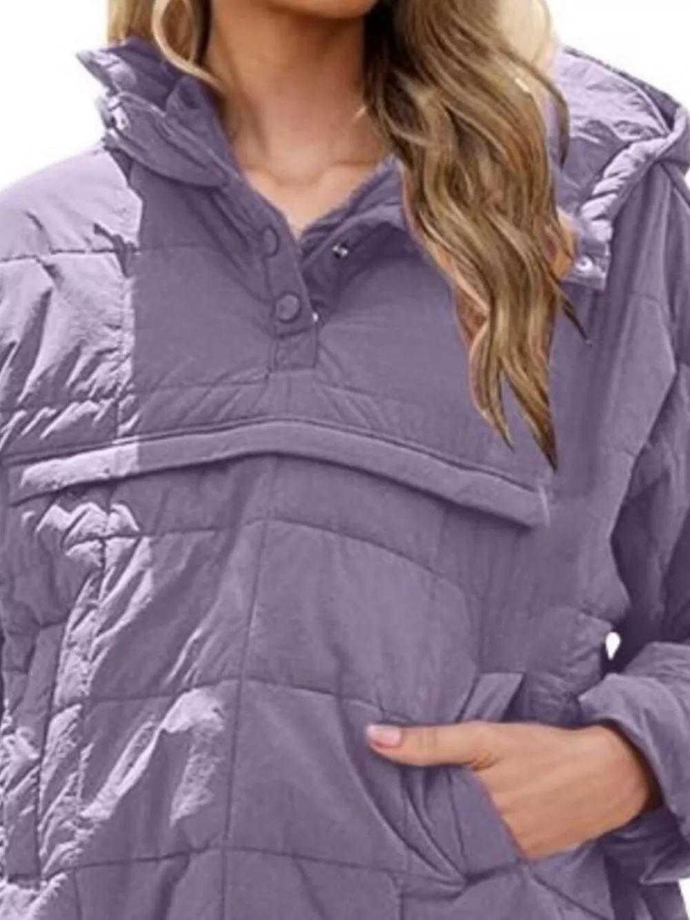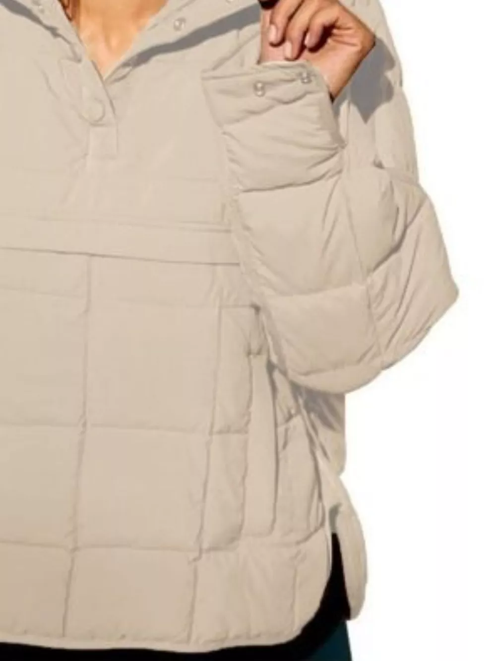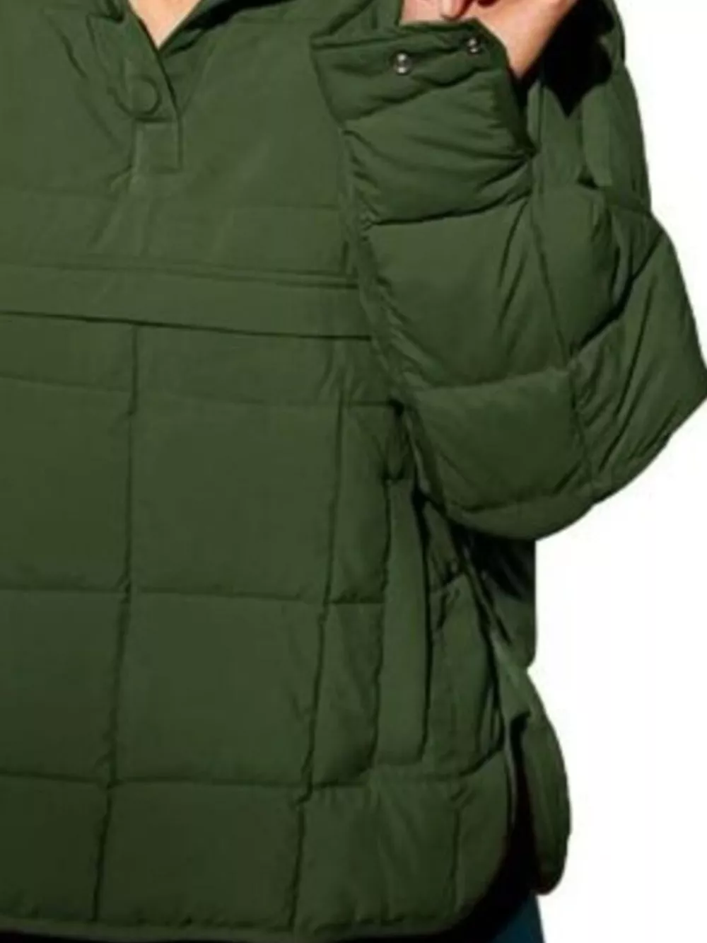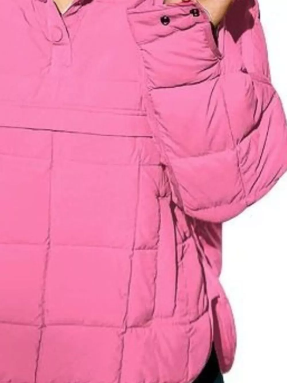 Full Size Quarter Snap Hooded Puffer Top Plus Size