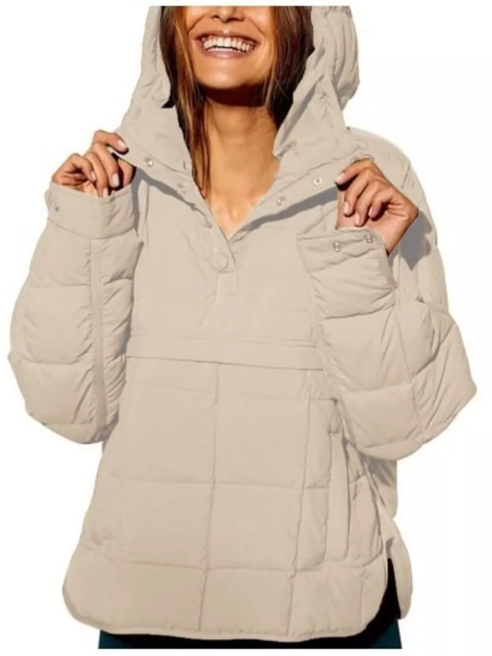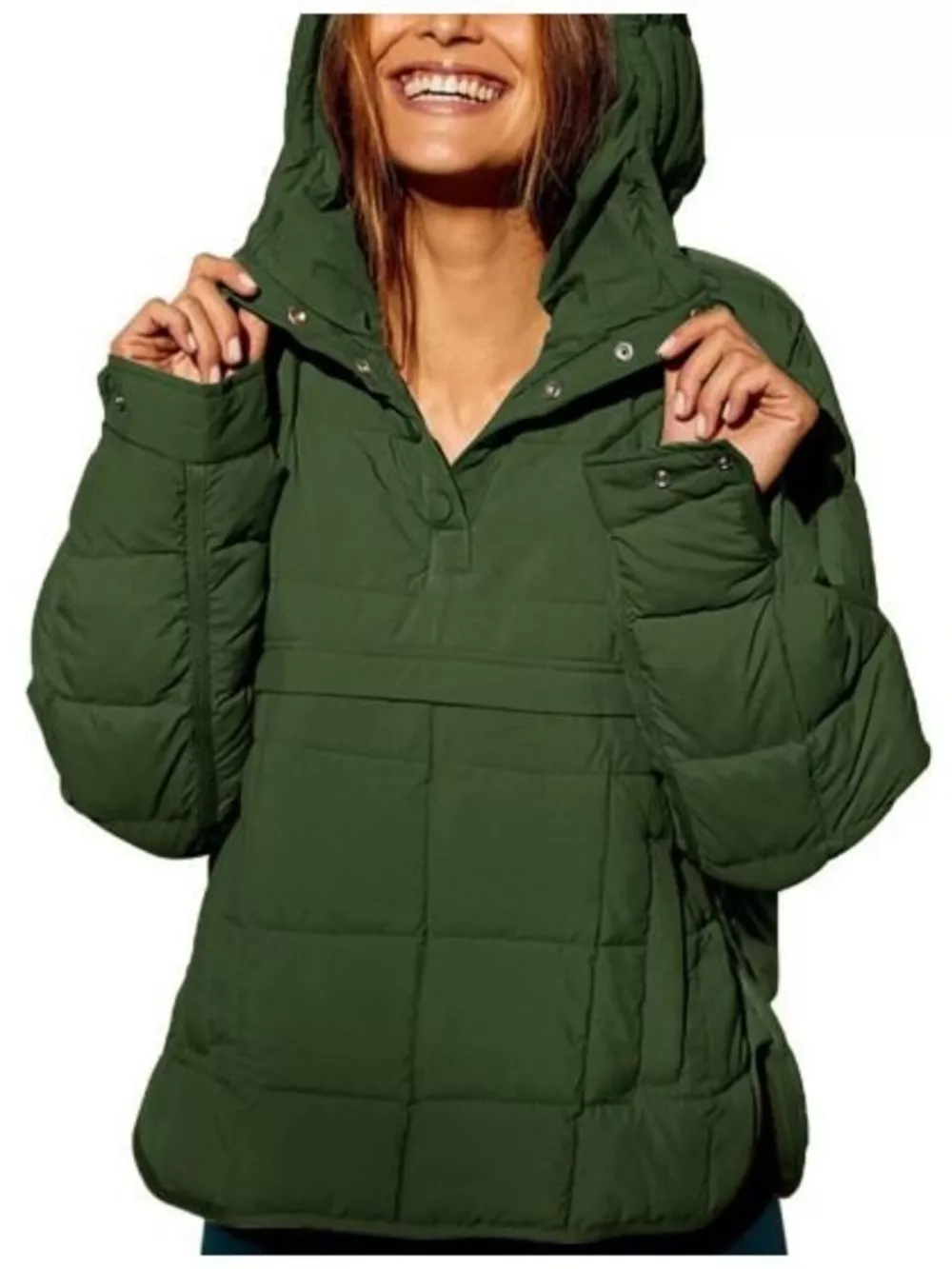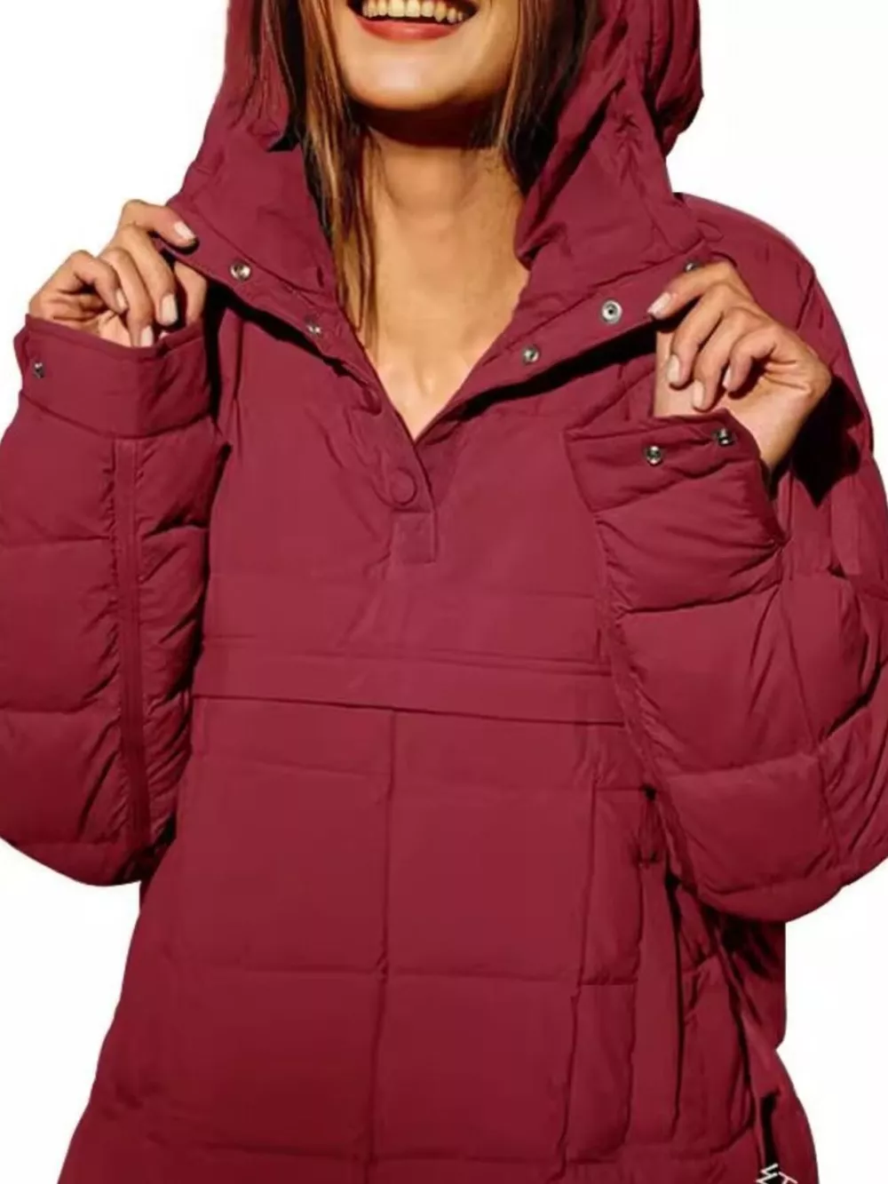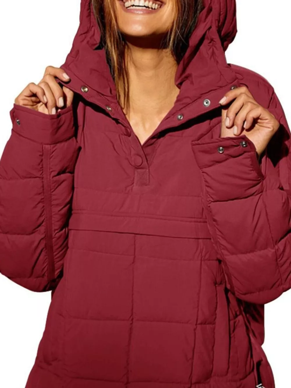 Full Size Quarter Snap Hooded Puffer Top Plus Size