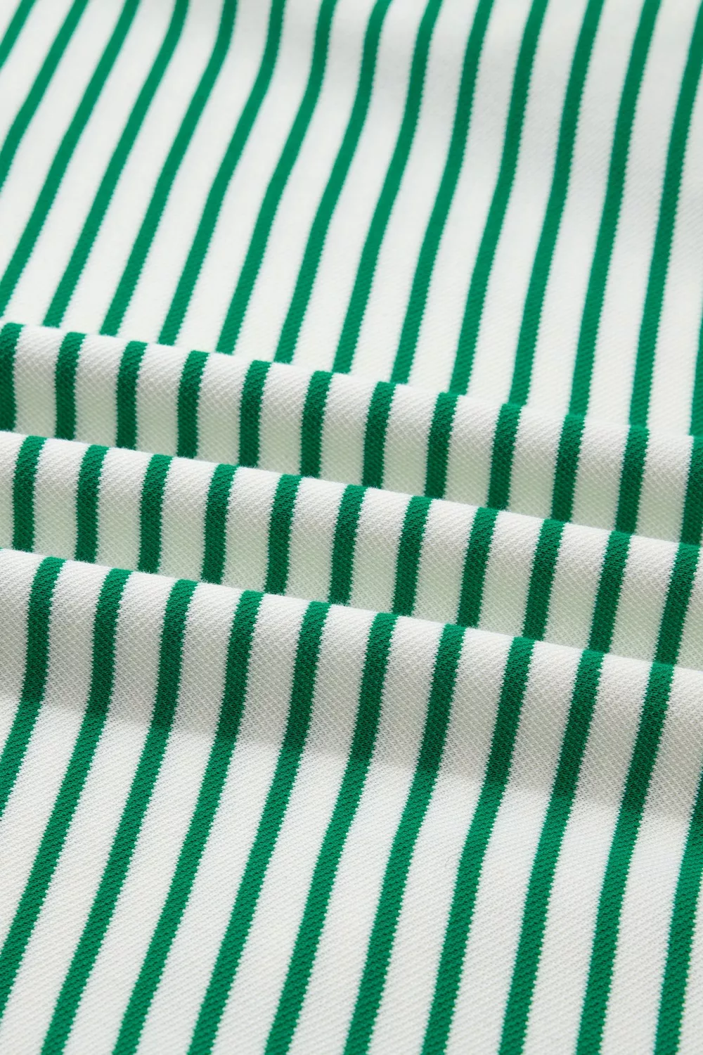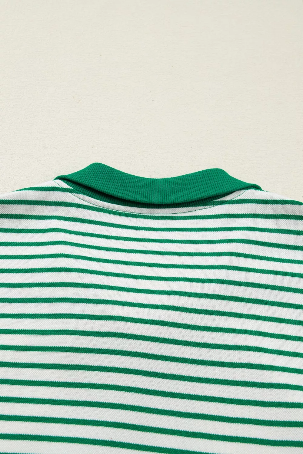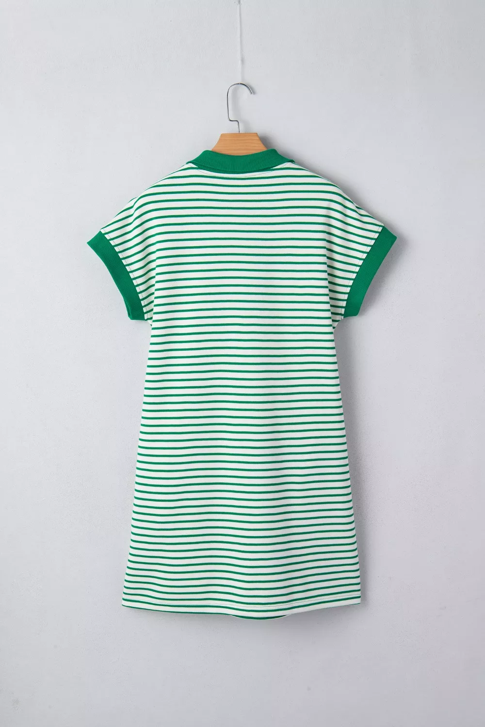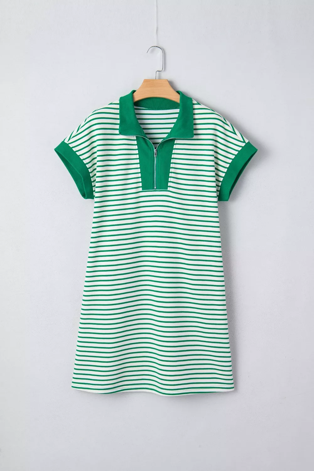 Stripe Quarter Zip Polo Collar T Shirt Dress with Pockets