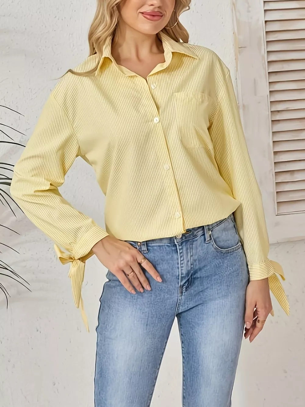 Striped Tie-Cuff Long Sleeve Shirt