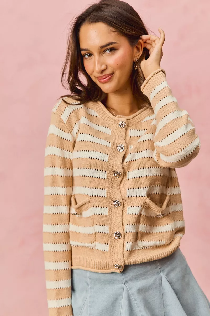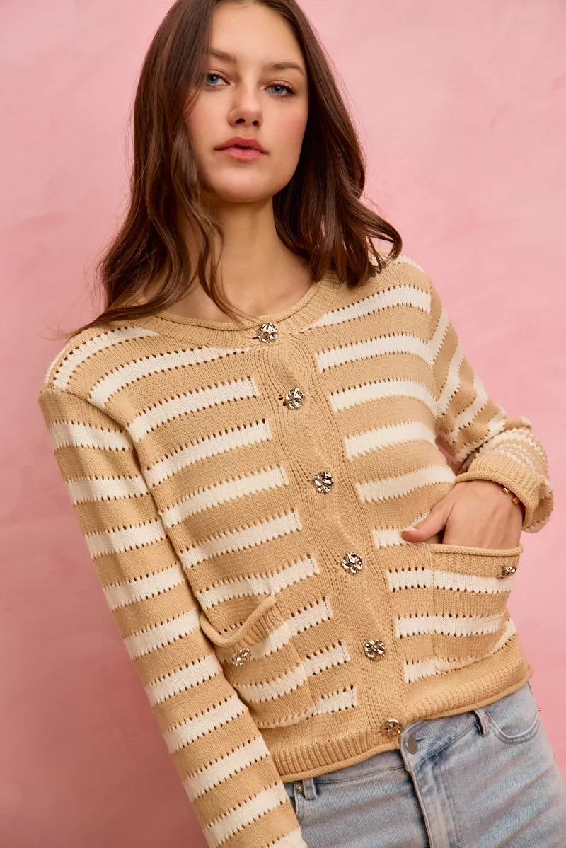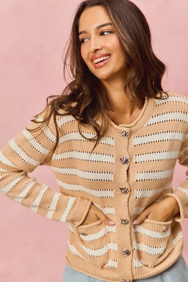 SO ME Stripe Long Sleeves Button Sweater Cardigan
