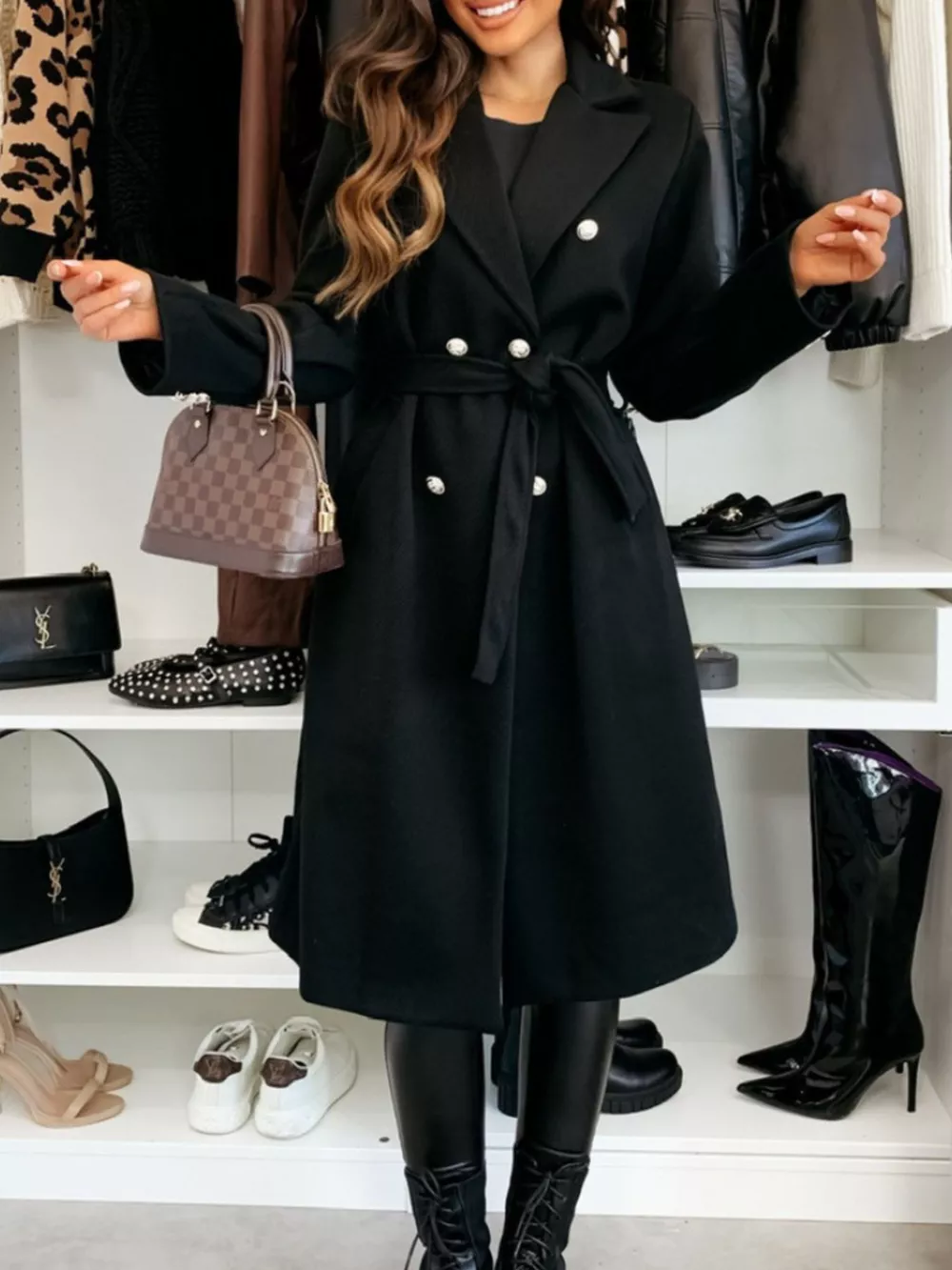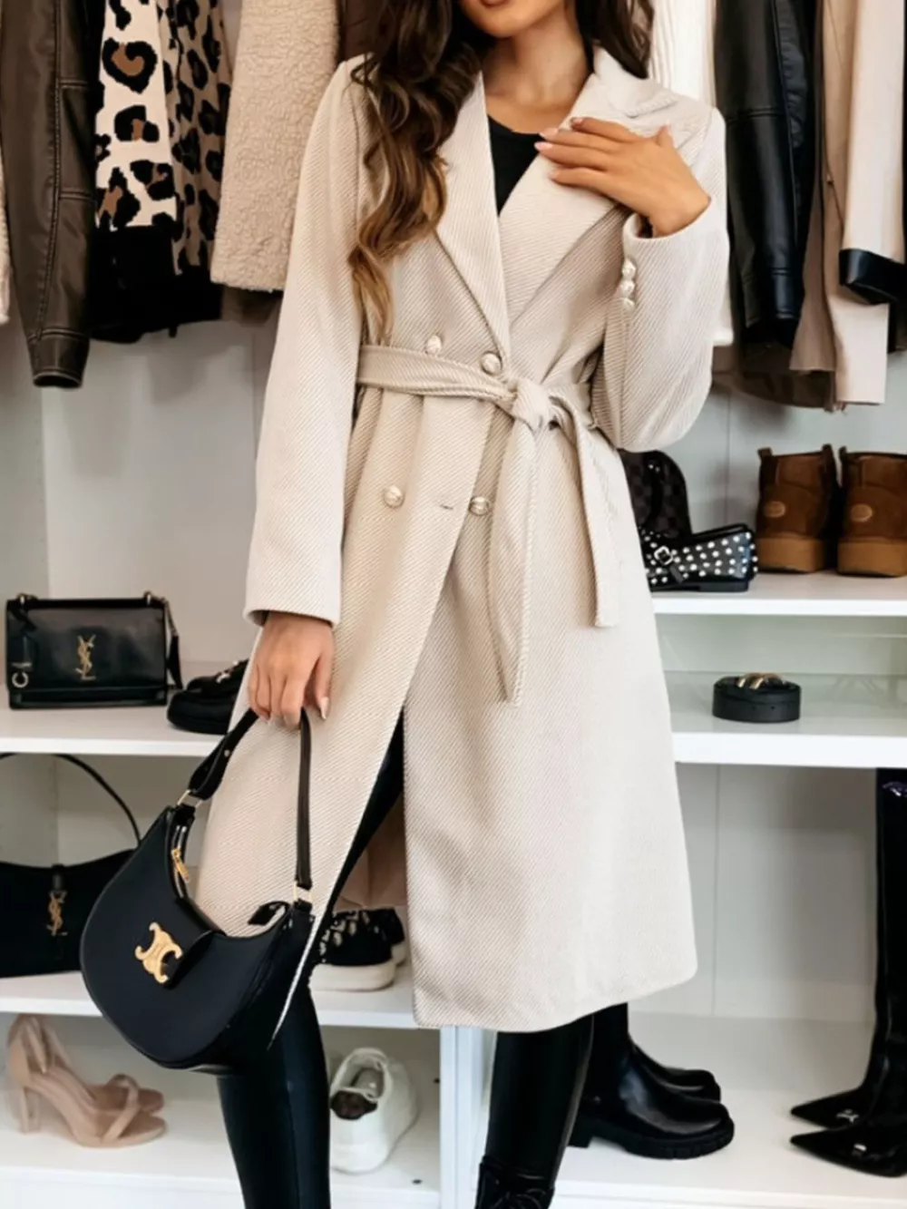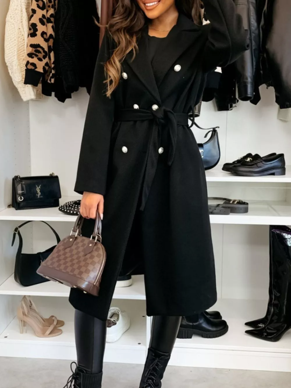 - Features:Buttoned,Pocketed,Double-breasted,Tied