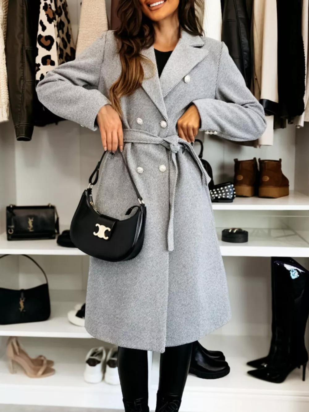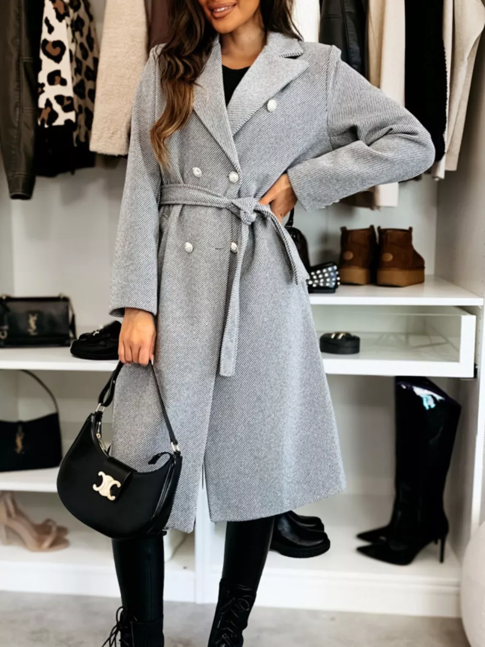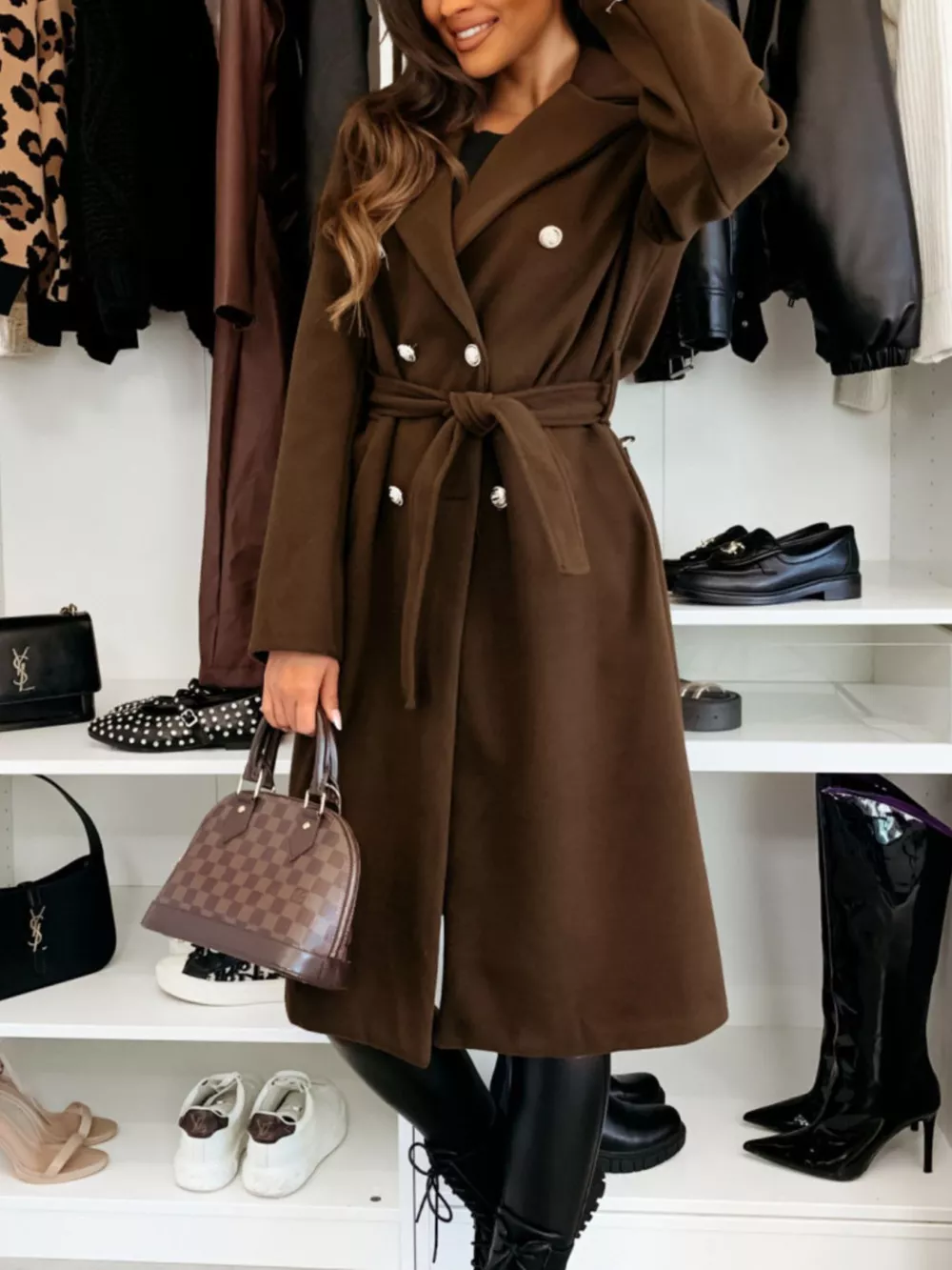 - Features:Buttoned,Pocketed,Double-breasted,Tied