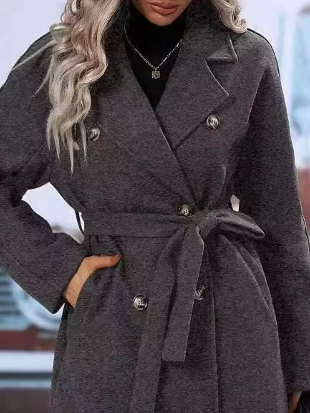 • Features:Buttoned,Belted,Pocketed,Double-breasted