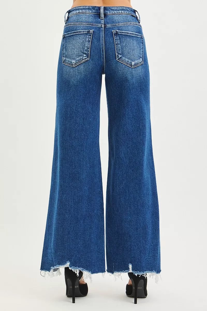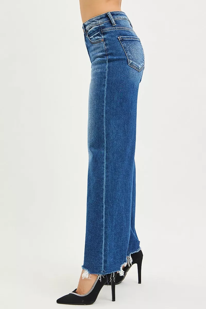 RISEN High Rise Wide Leg Jeans with Distressed Hem