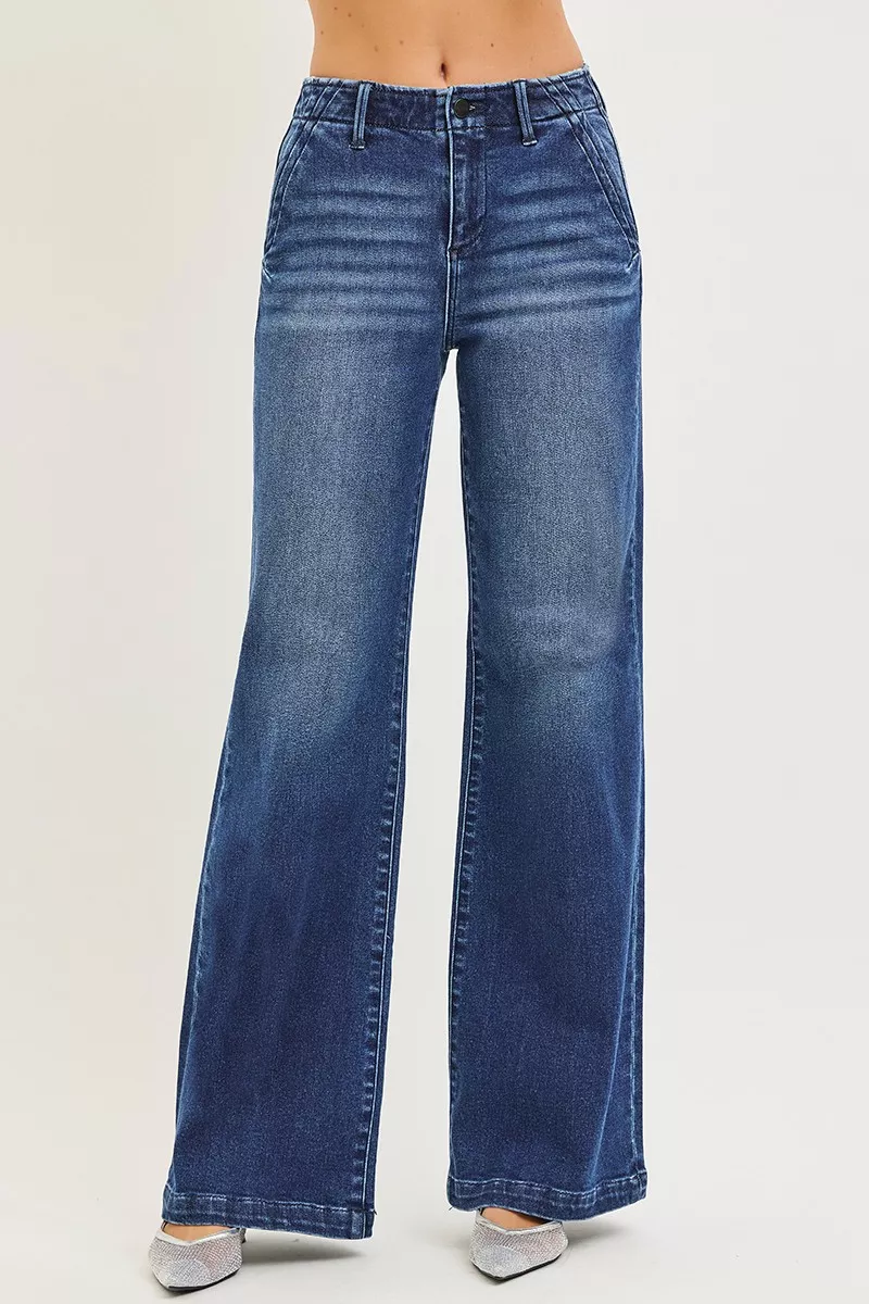 RISEN High Rise Wide Leg Slanted Pocket Jeans