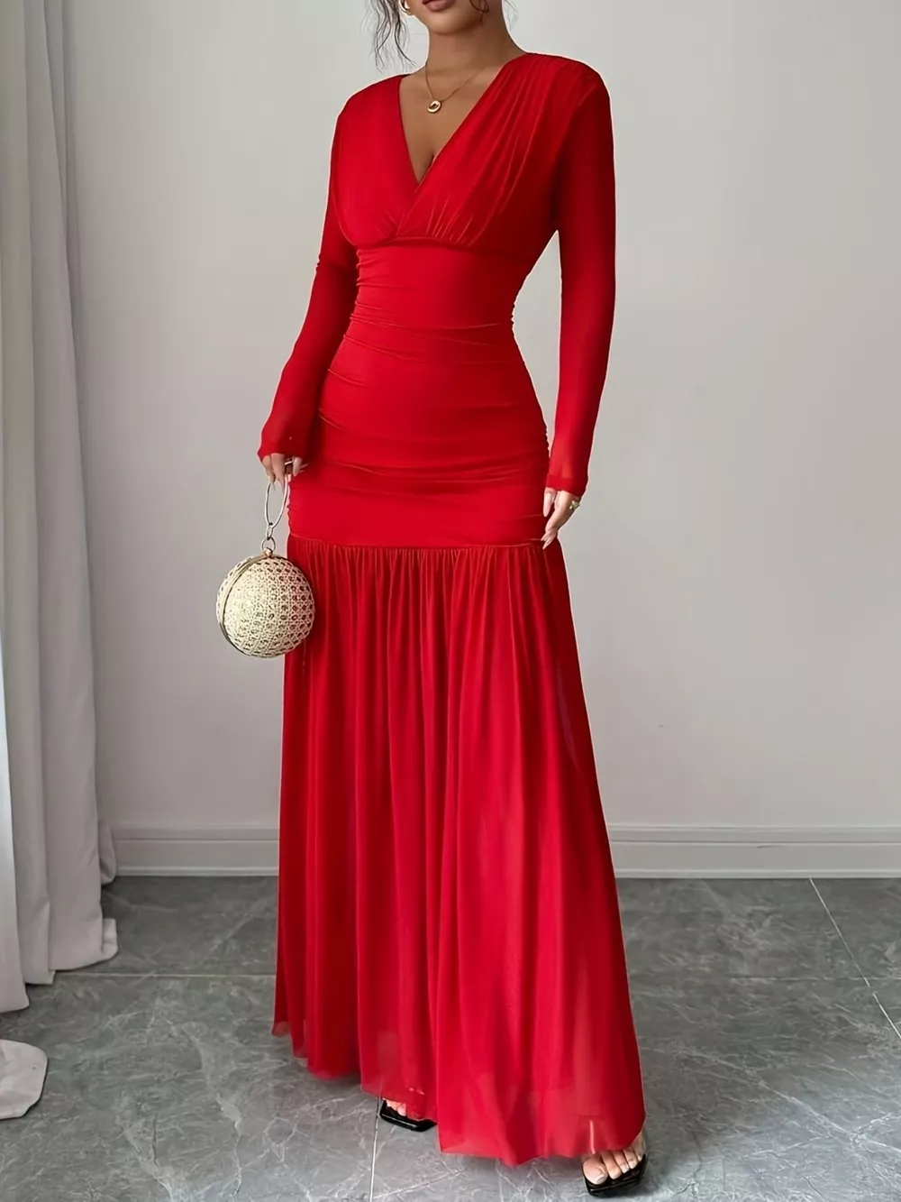 Ruched Surplice Long Sleeve Maxi Dress