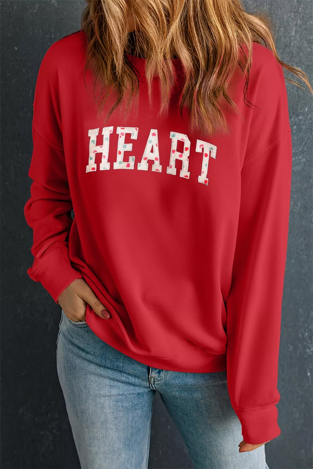 HEART Embroidered Patched Graphic Valentine Sweatshirt