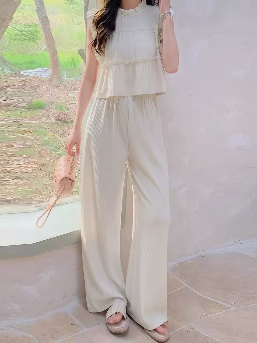 Ruffled Sleeveless Top and Wide Leg Pants Set