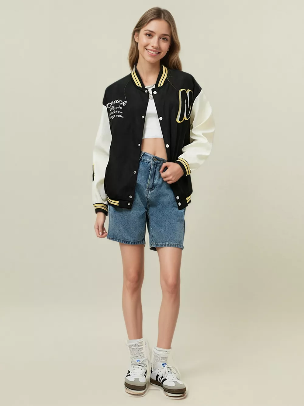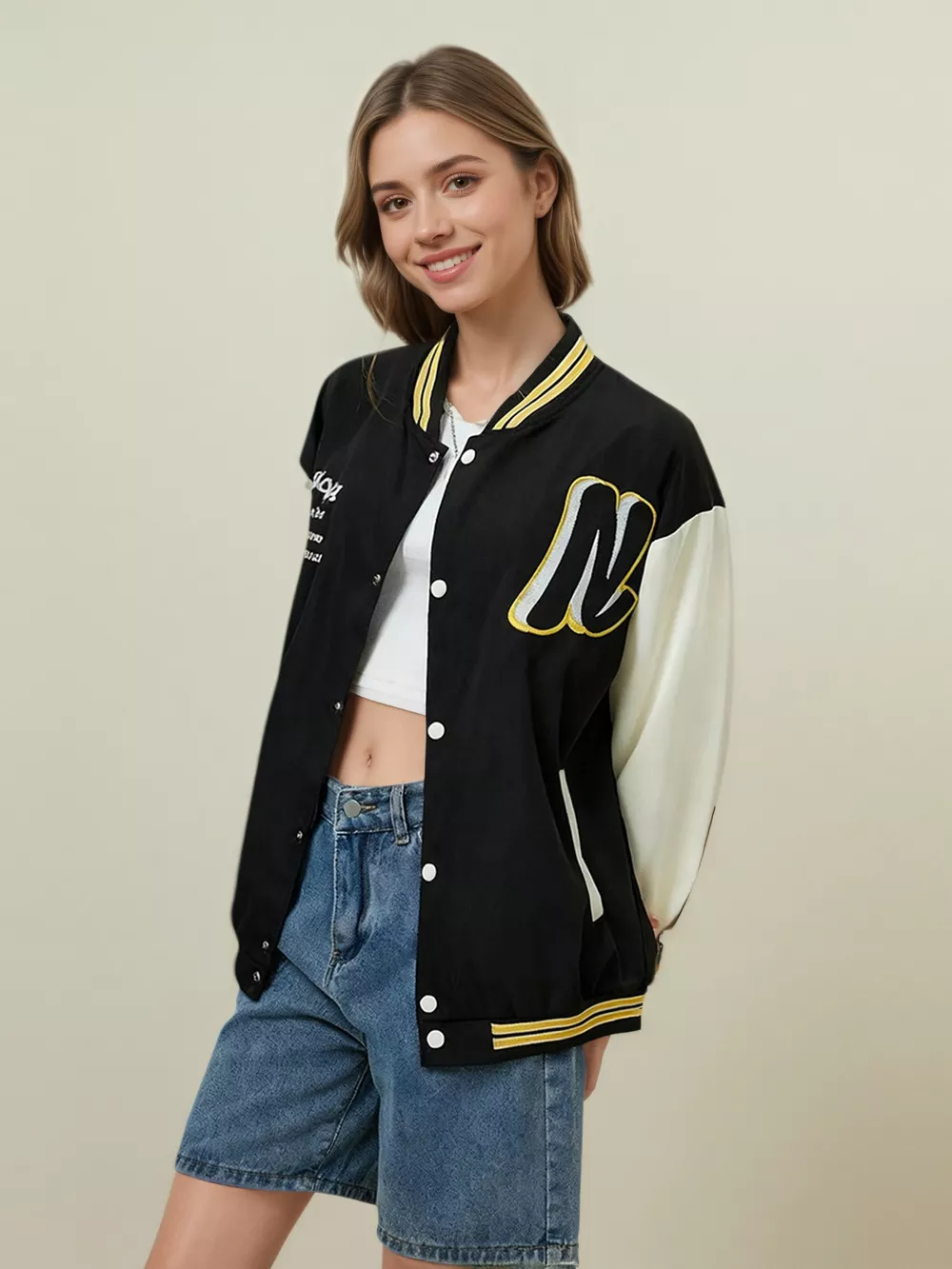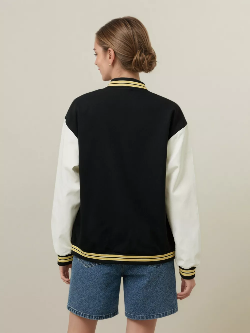 Plus Size Contrast Sleeves Snap Down Jacket