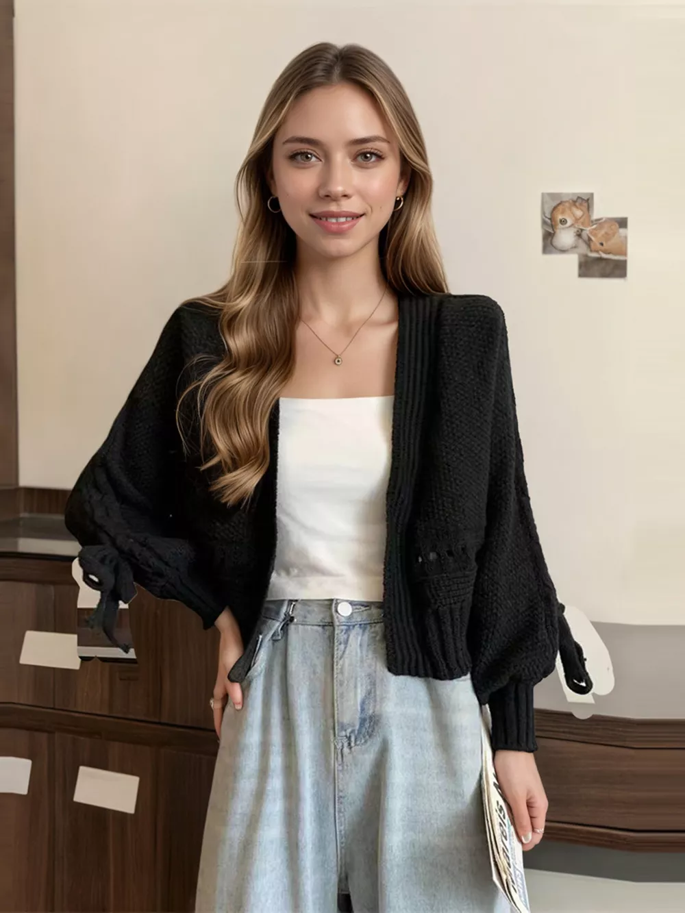 Chunky Knit Long Sleeve Tie Cardigan