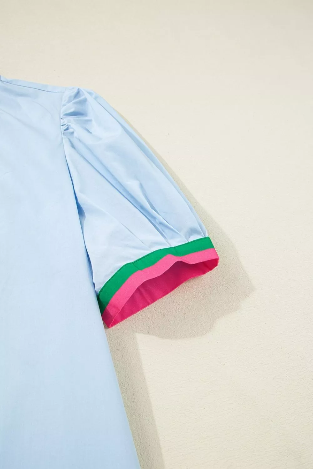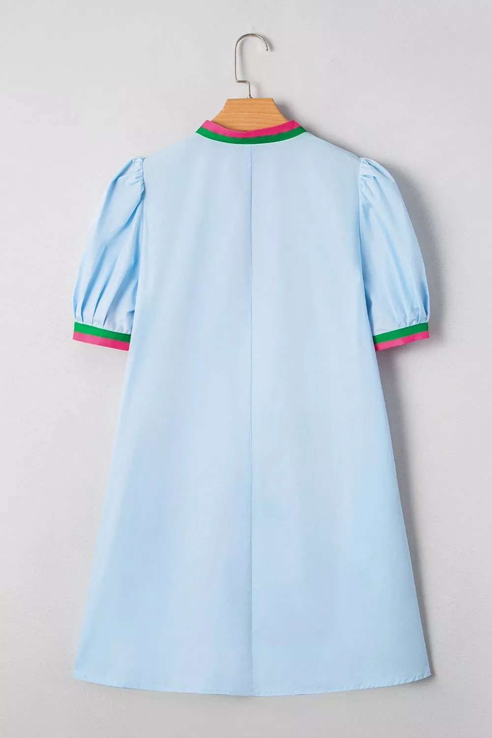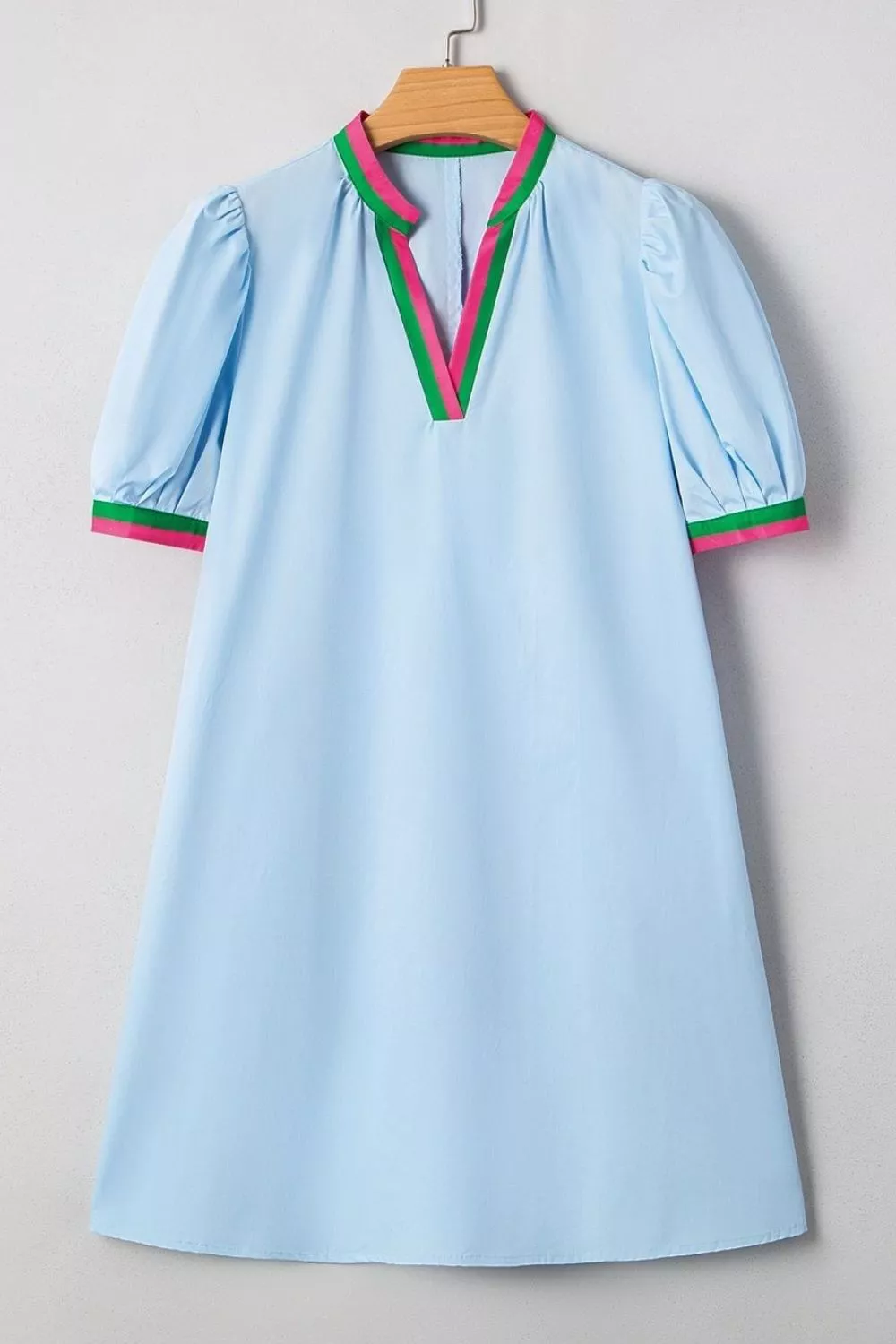 Puff Sleeve Mini Dress with Contrast Trim