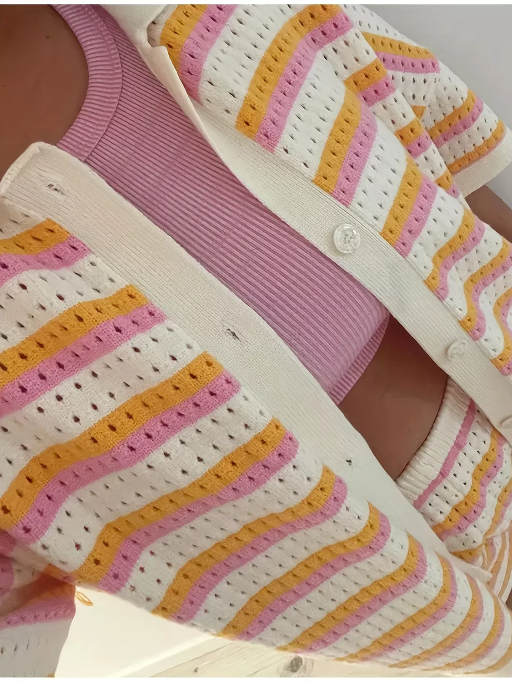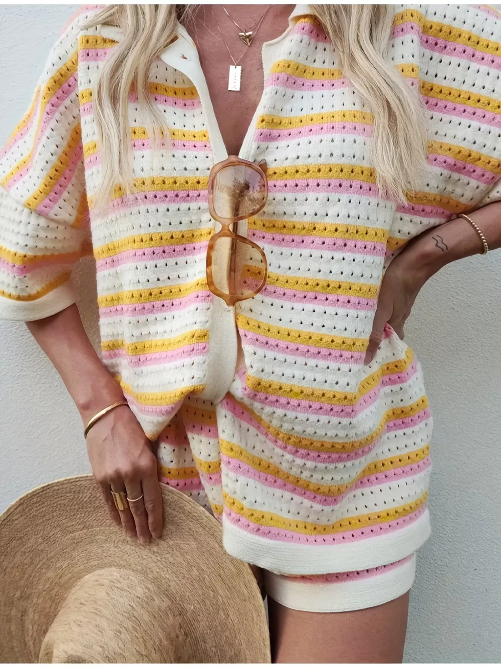 Openwork Button Up Top and Shorts Set