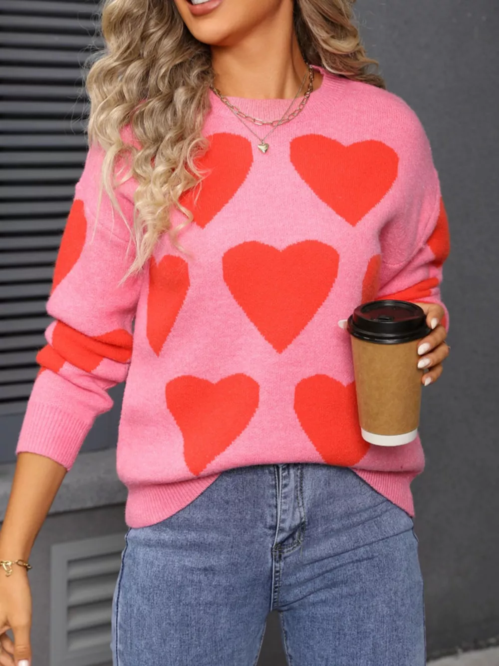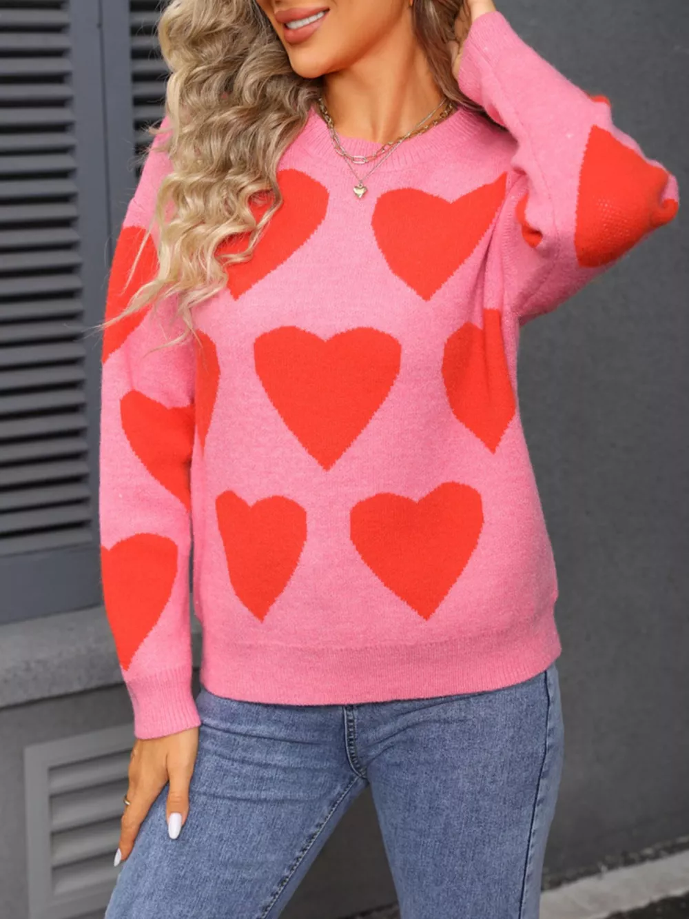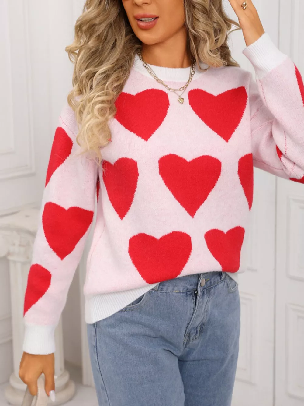 Valentine's Day Heart Round Neck Knitted Sweater