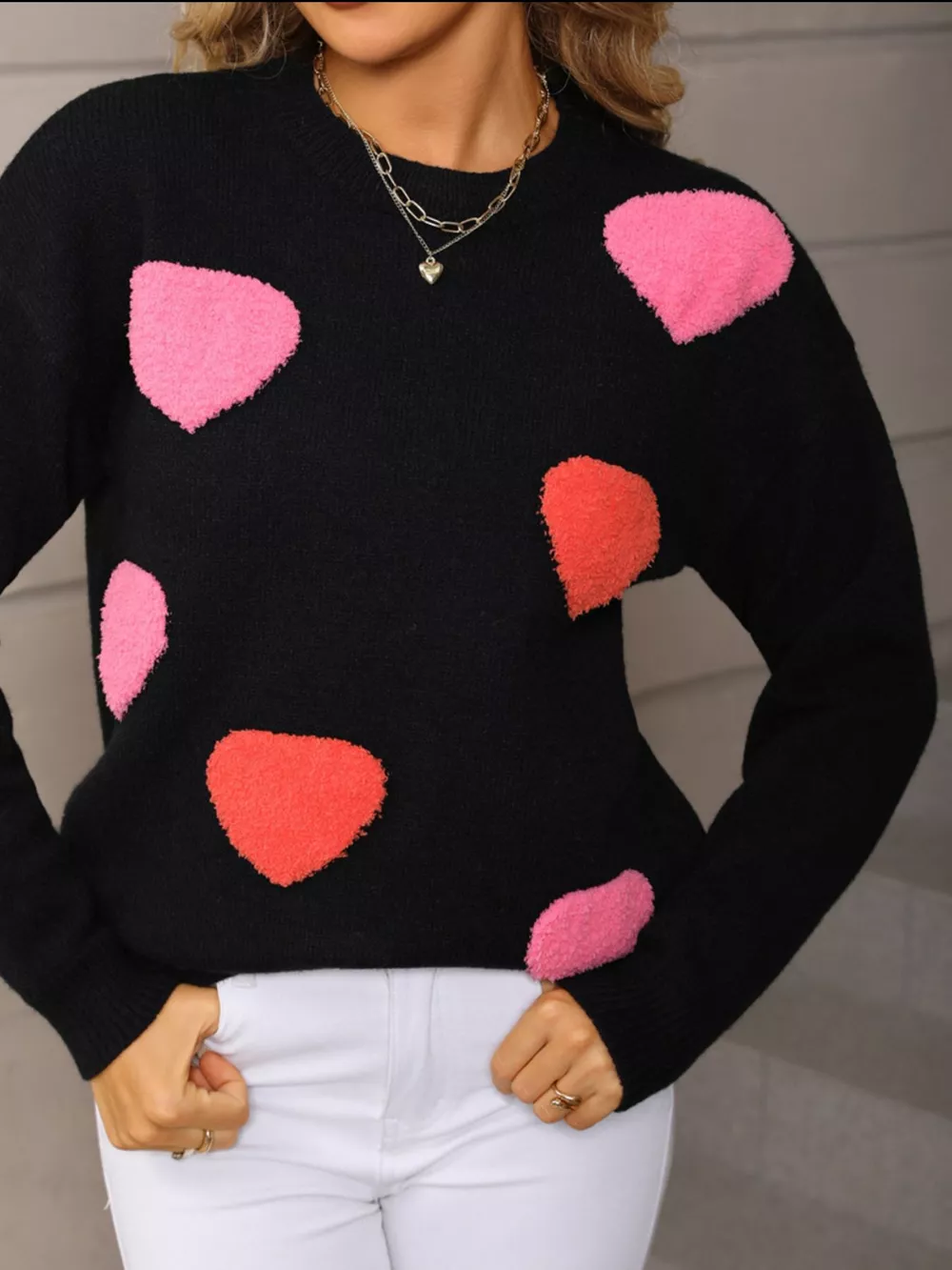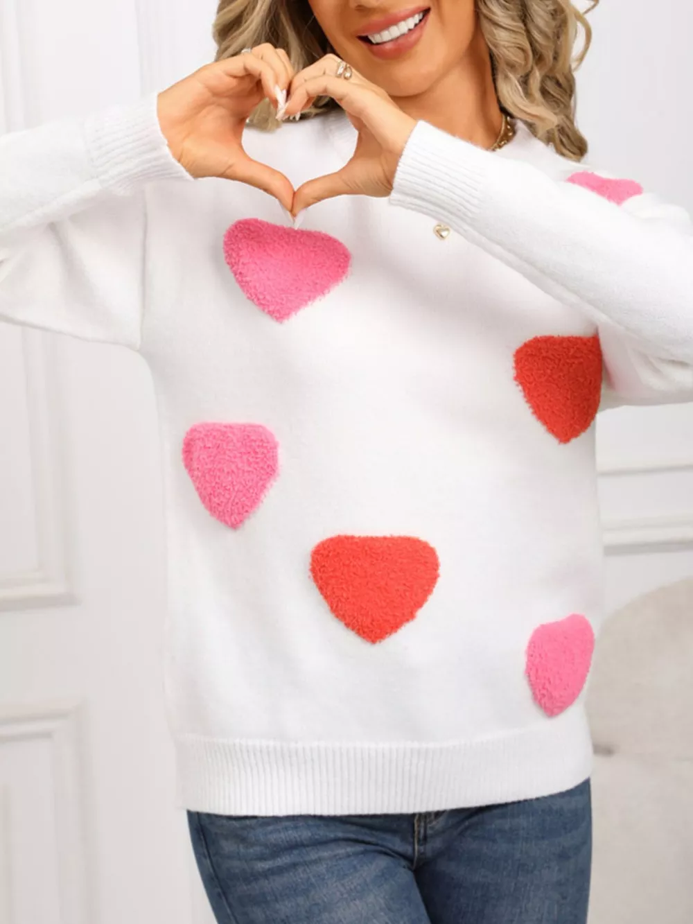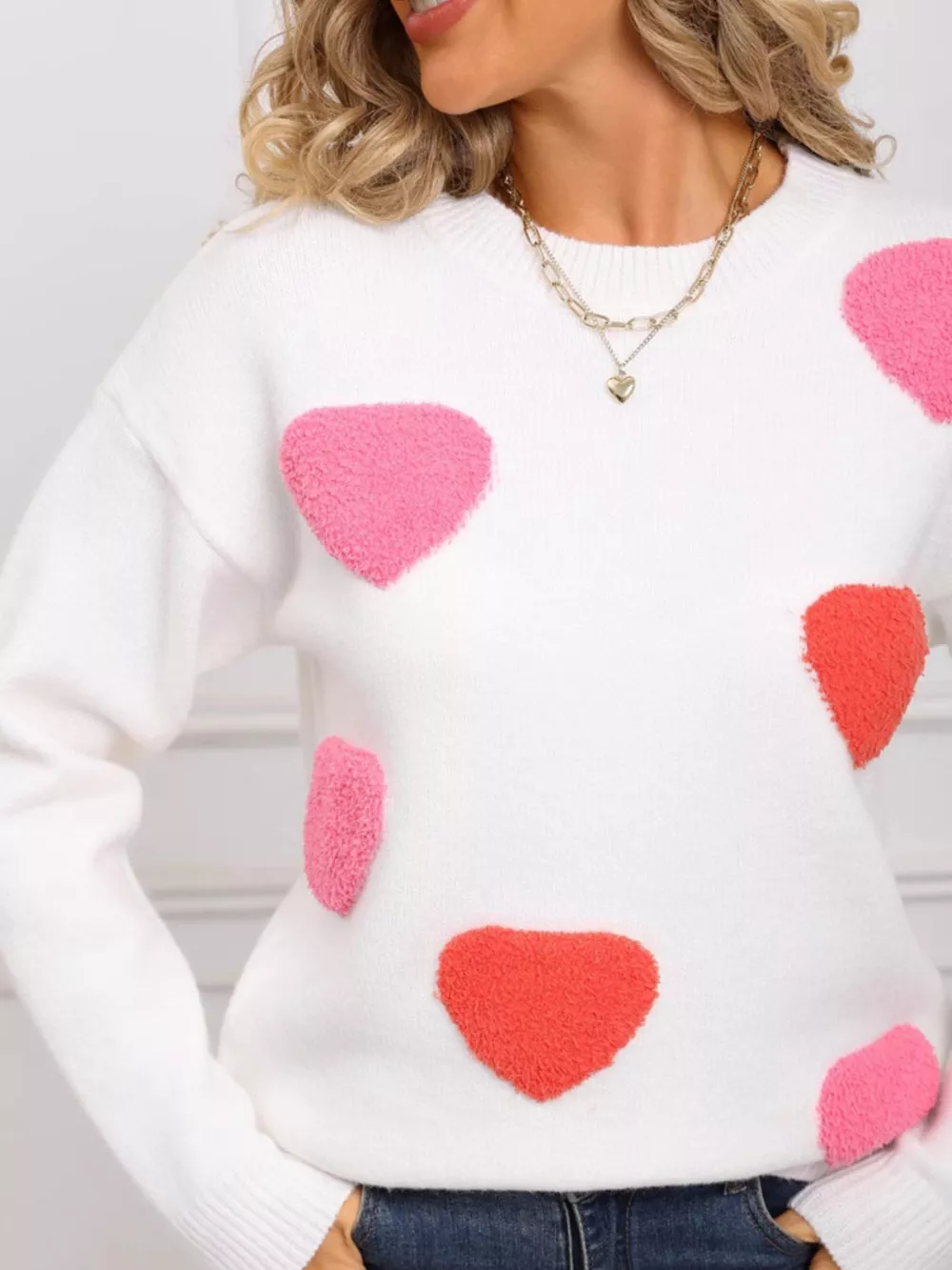 Valentine's Day Heart Pattern Long Sleeve Sweater