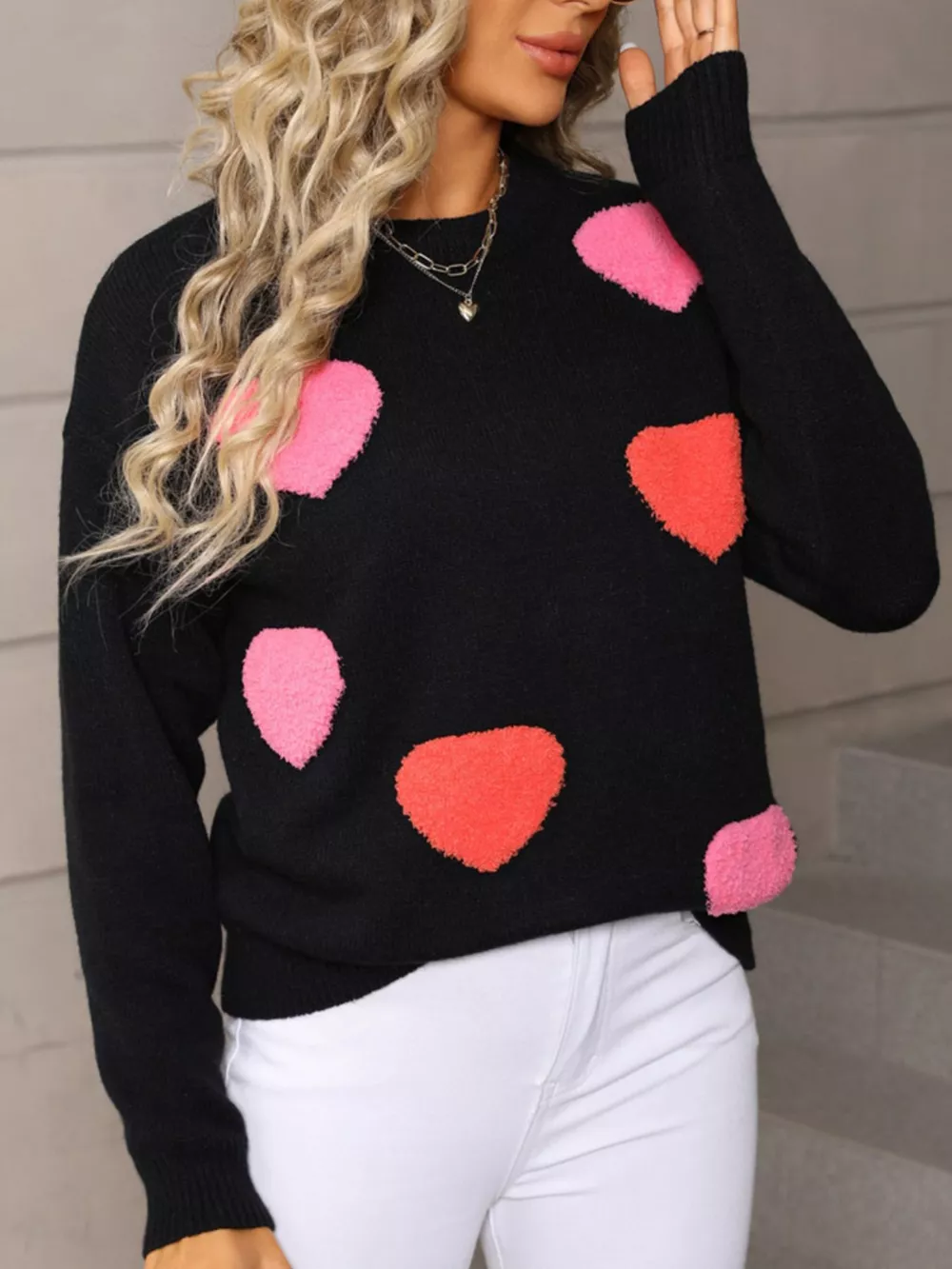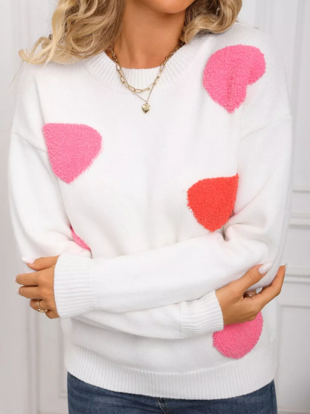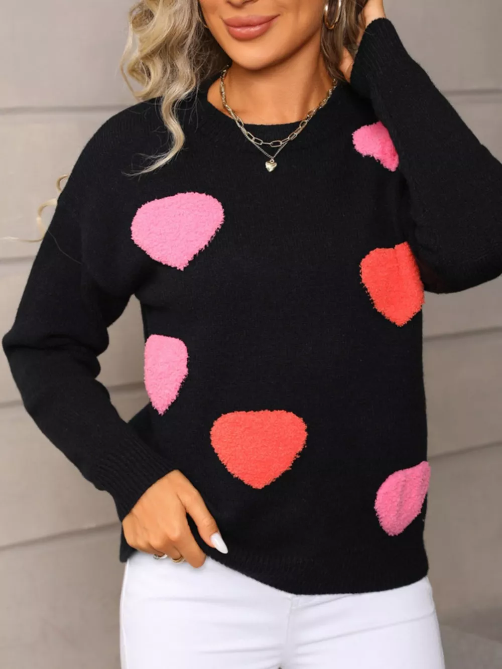Valentine's Day Heart Pattern Long Sleeve Sweater