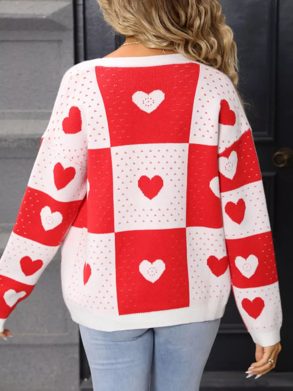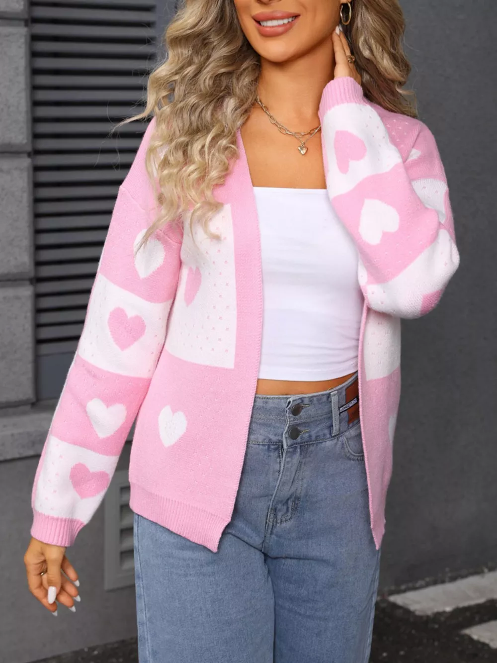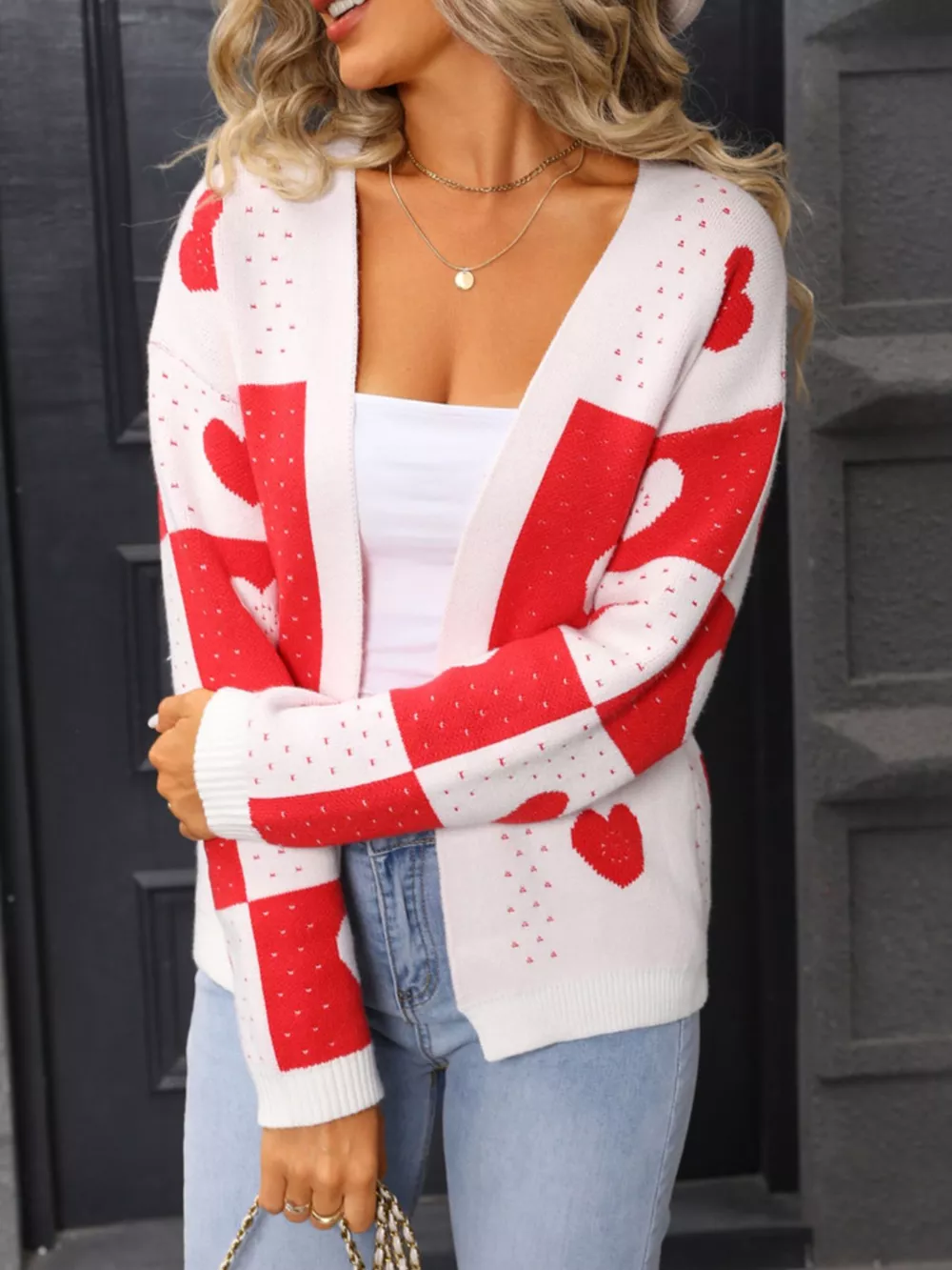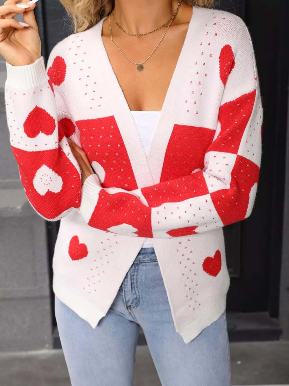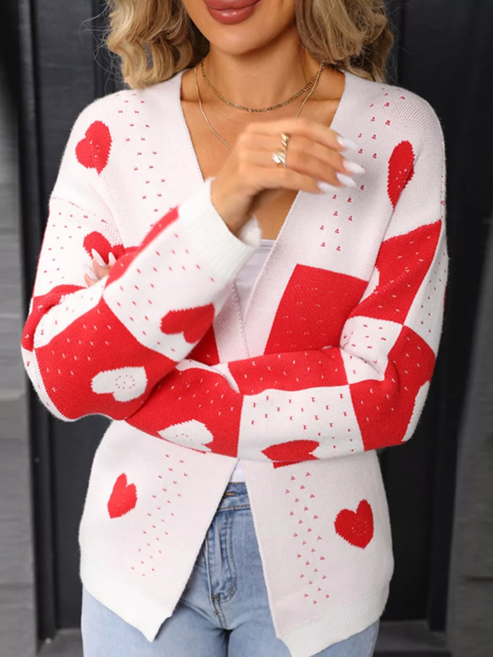 Valentine's Day Heart Pattern Knit Cardigan