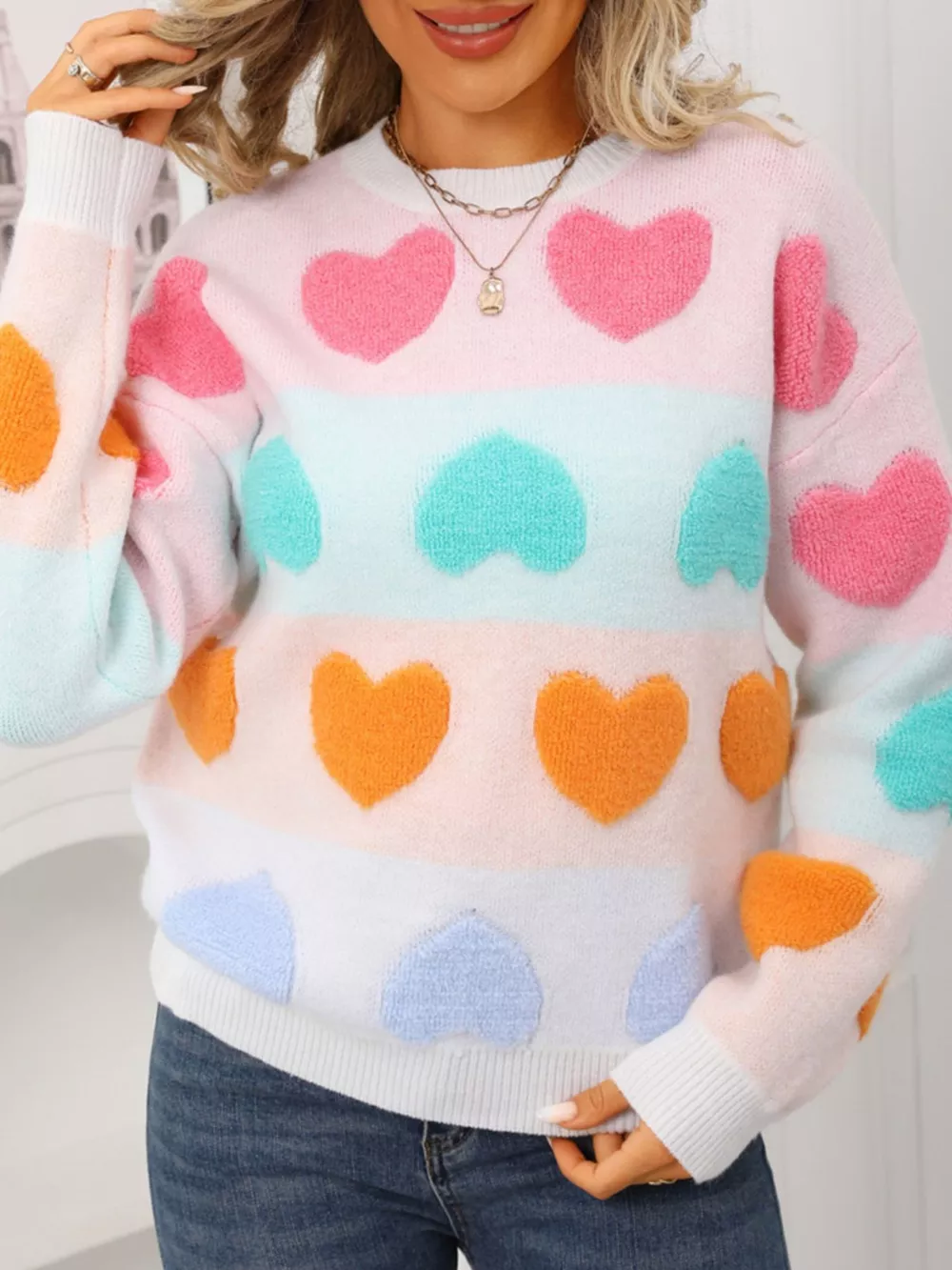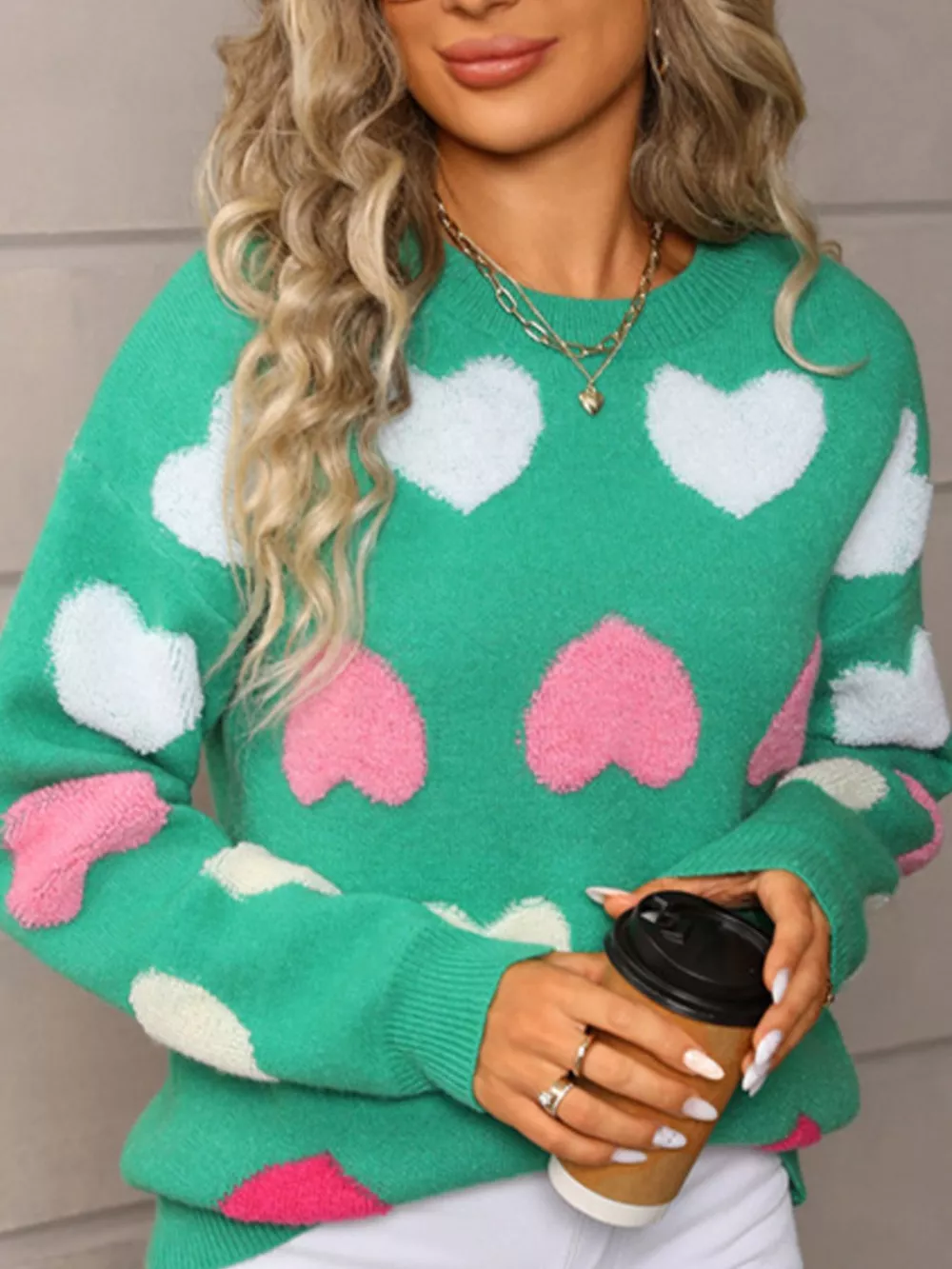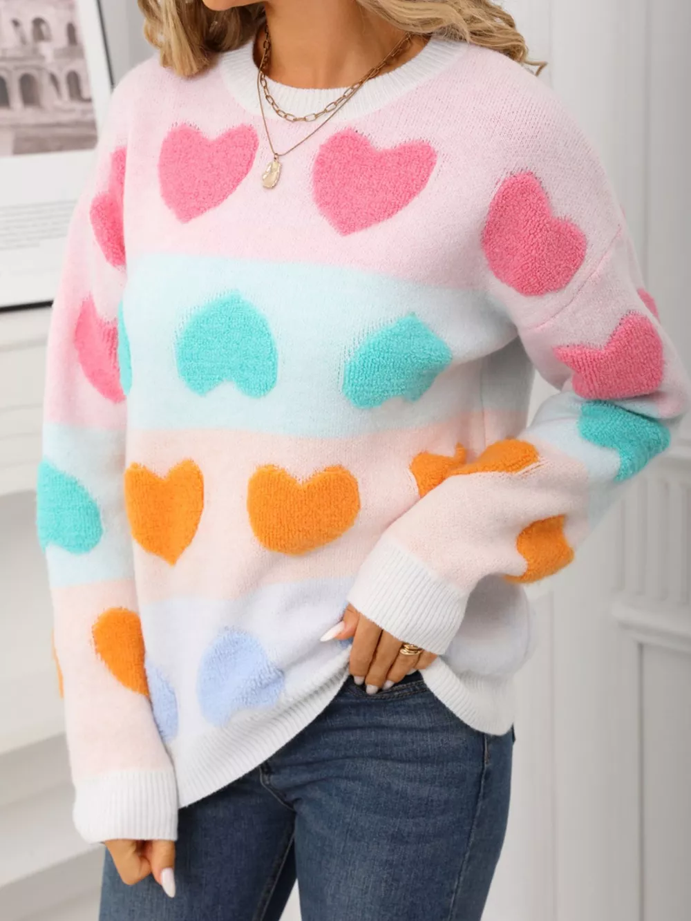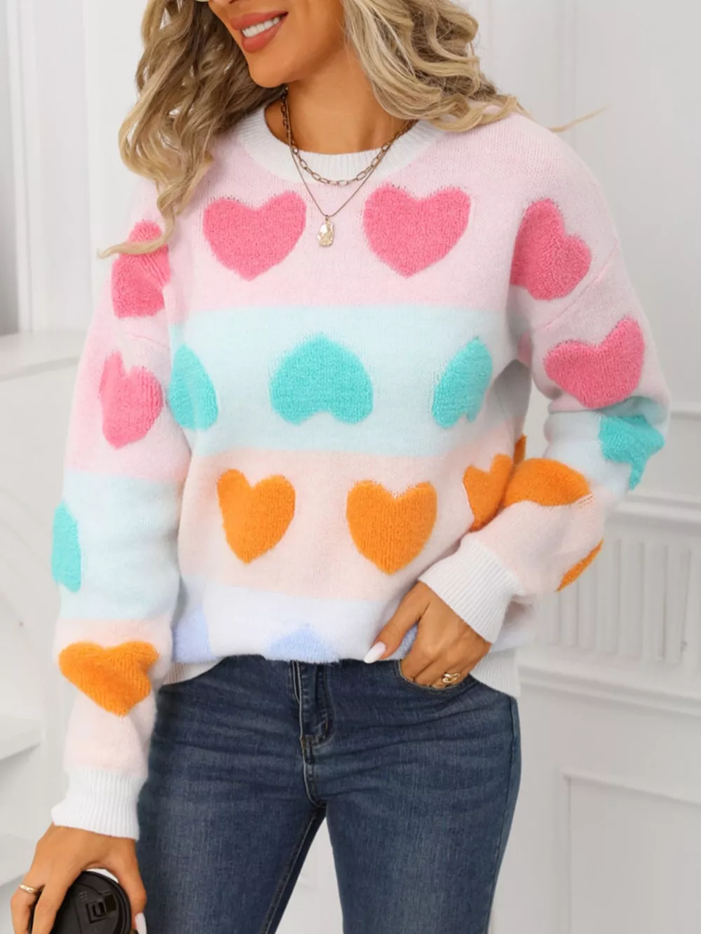 Valentine's Day Heart Pattern Fuzzy Knit Sweater