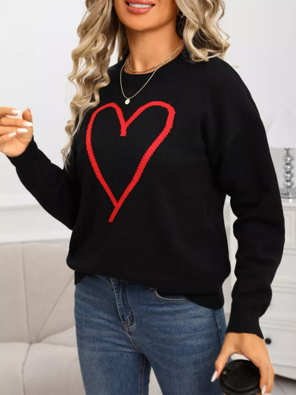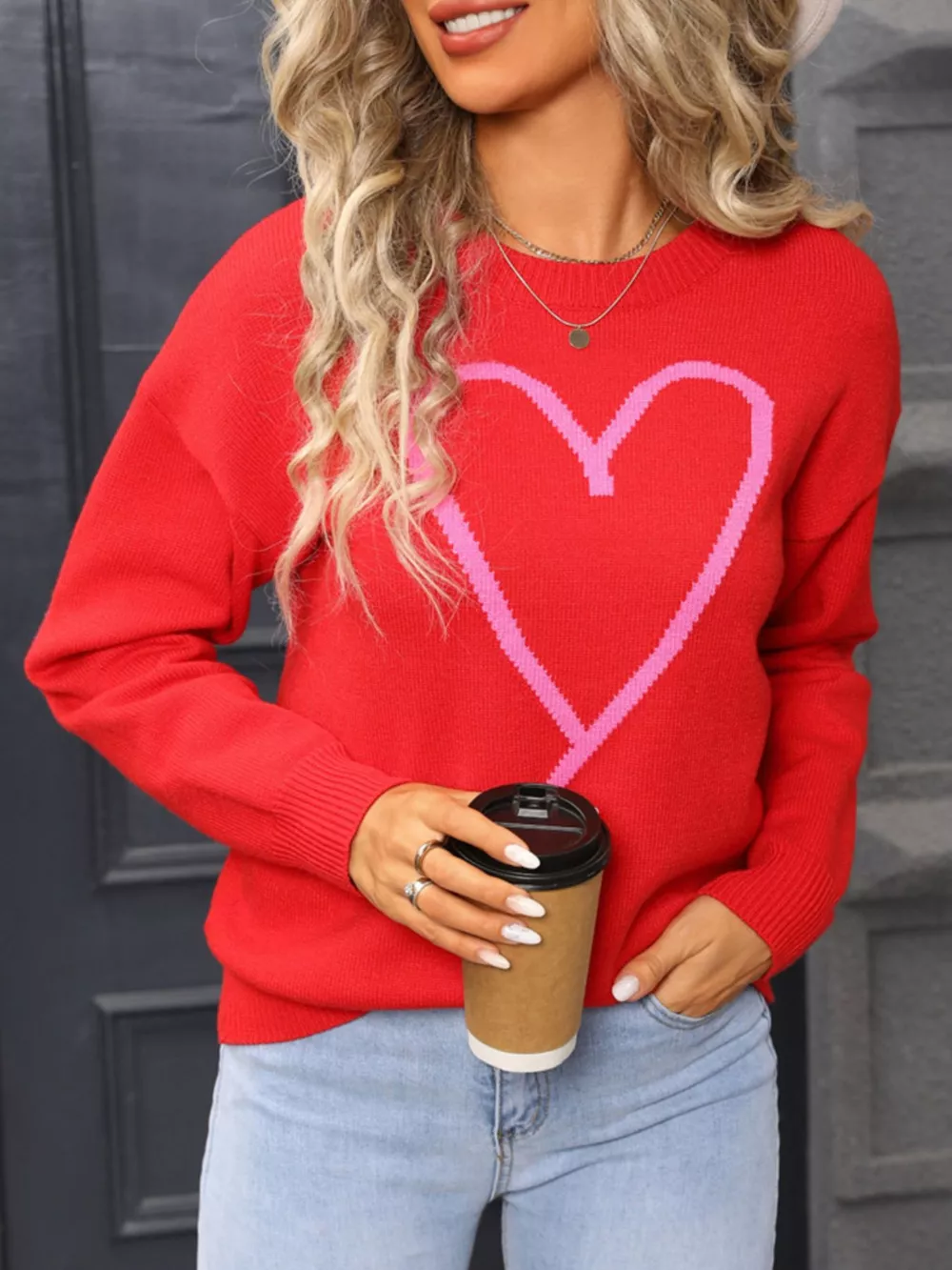 Valentine's Day Heart Graphic Dropped Shoulder Sweater