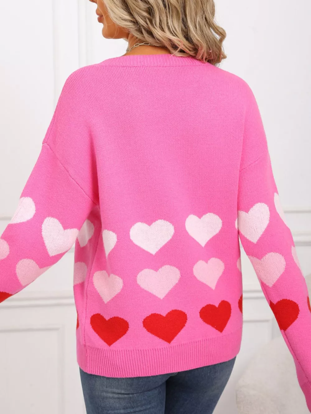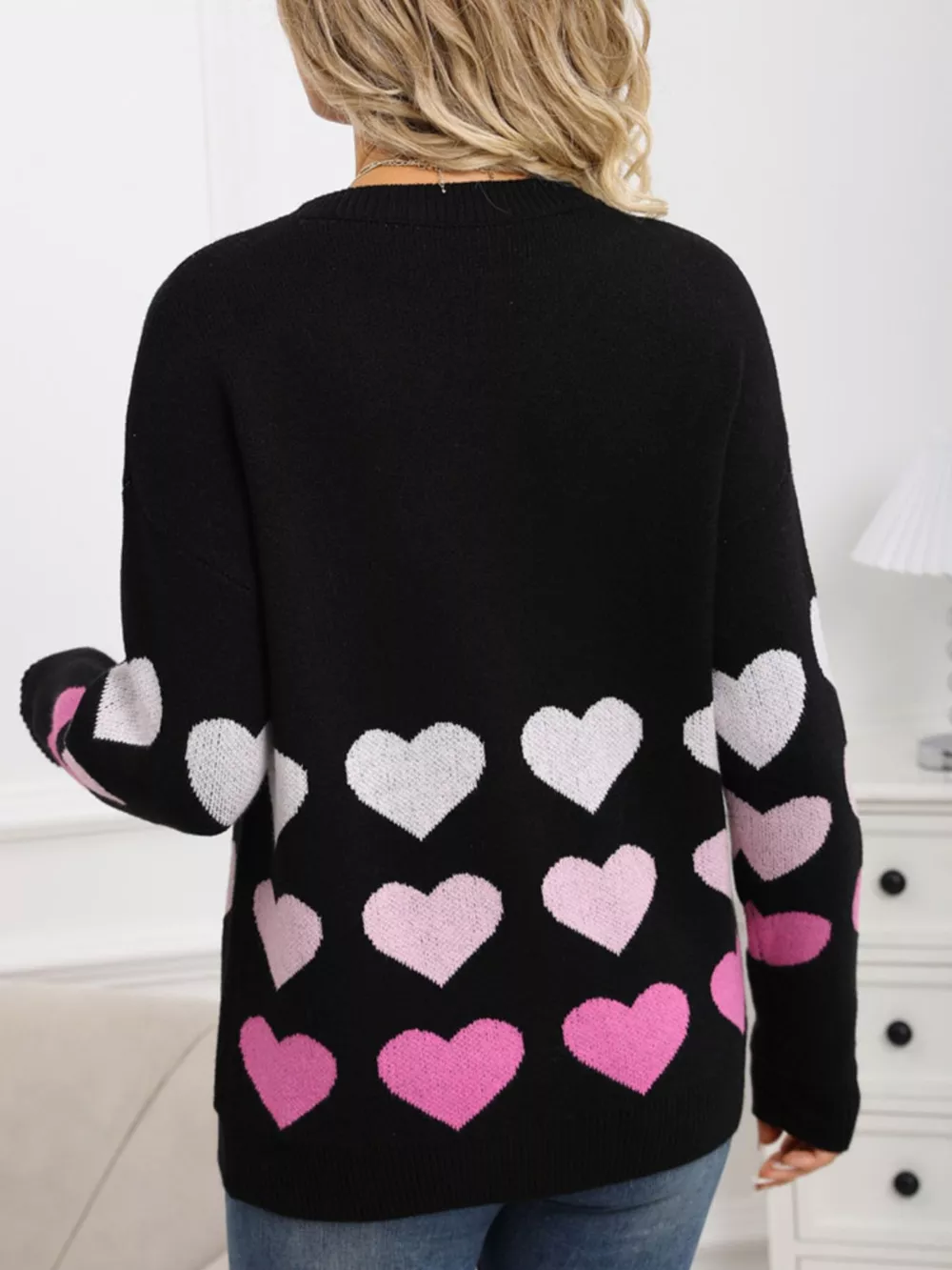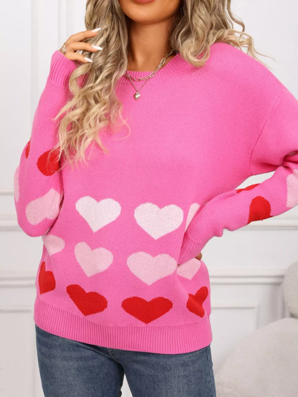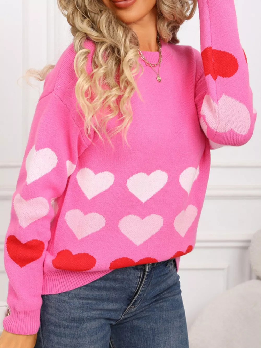 Valentine's Day Heart Pattern Crew Neck Sweater
