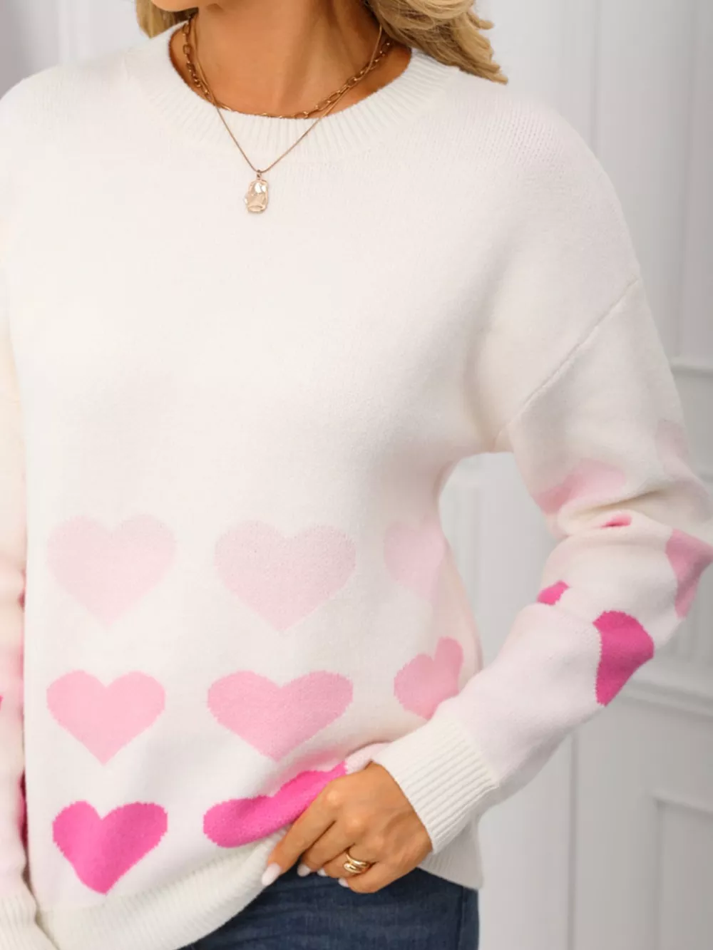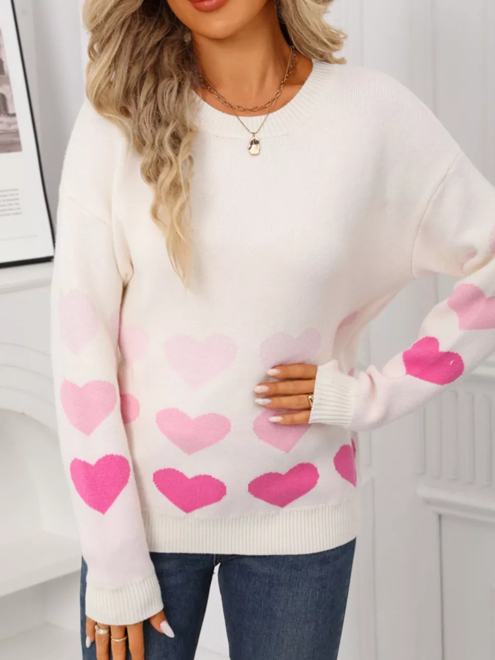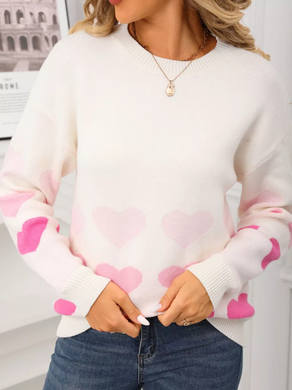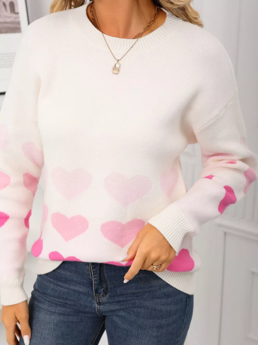 Valentine's Day Heart Pattern Crew Neck Sweater
