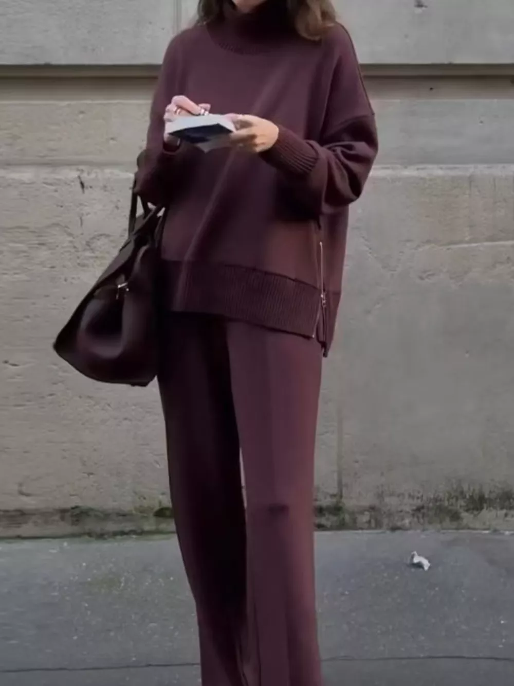 Turtleneck Side Zipper Sweatshirt and Pants Set