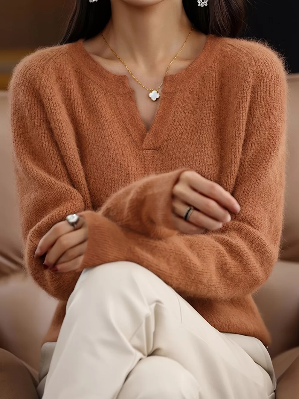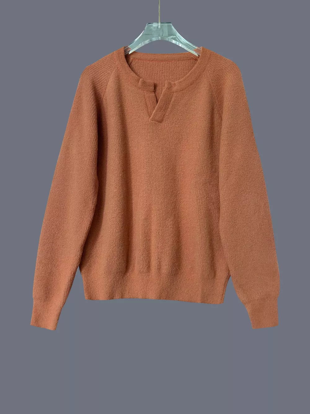 Notched Long Sleeve Sweater