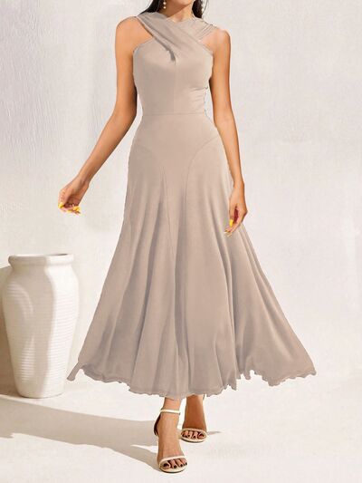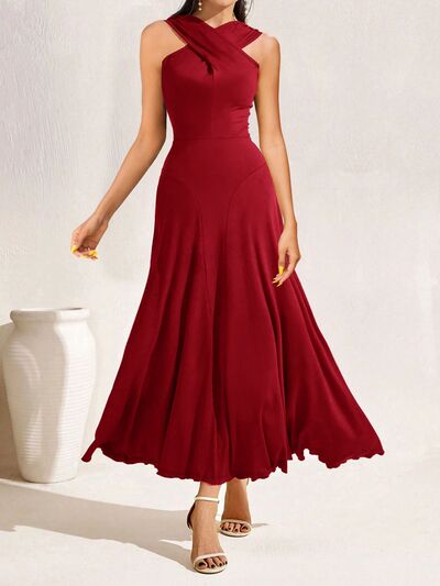 Crisscross Halter Neck A-Line Midi Dress