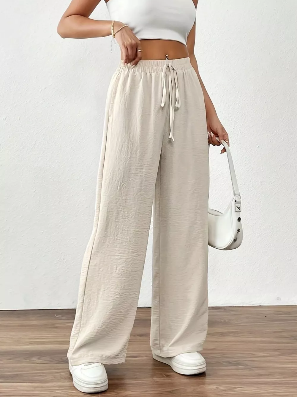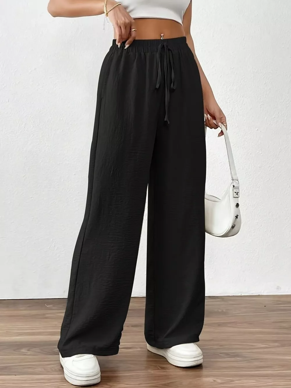 Casual Drawstring Wide Leg Pants