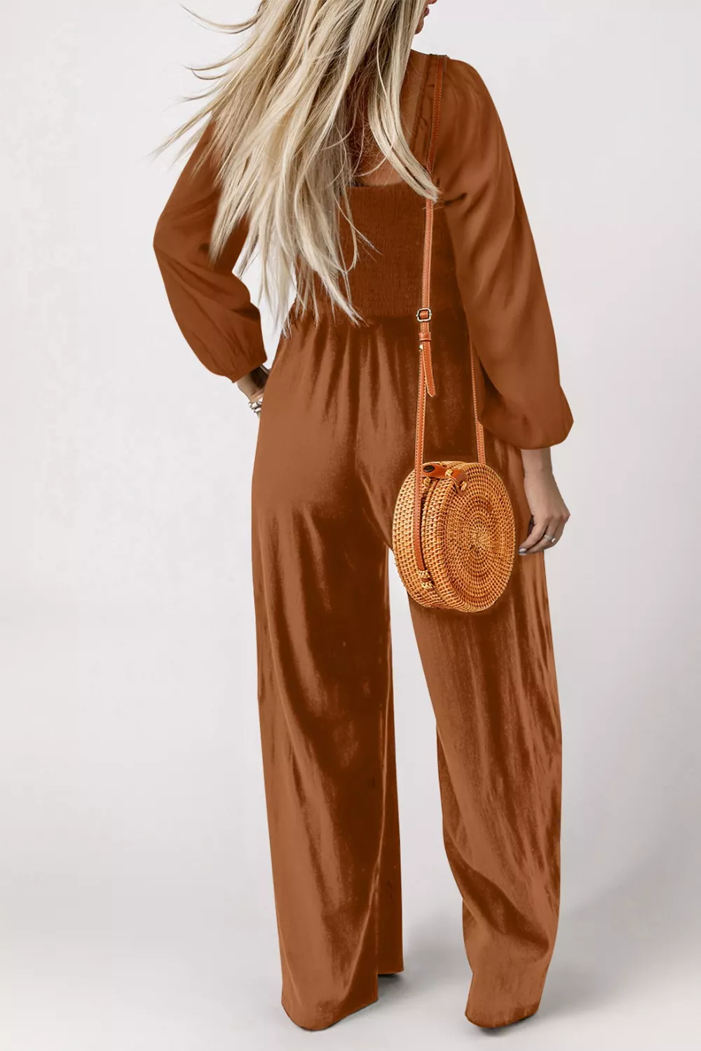 Boho Smocked Square Neck Wide Leg Jumpsuit