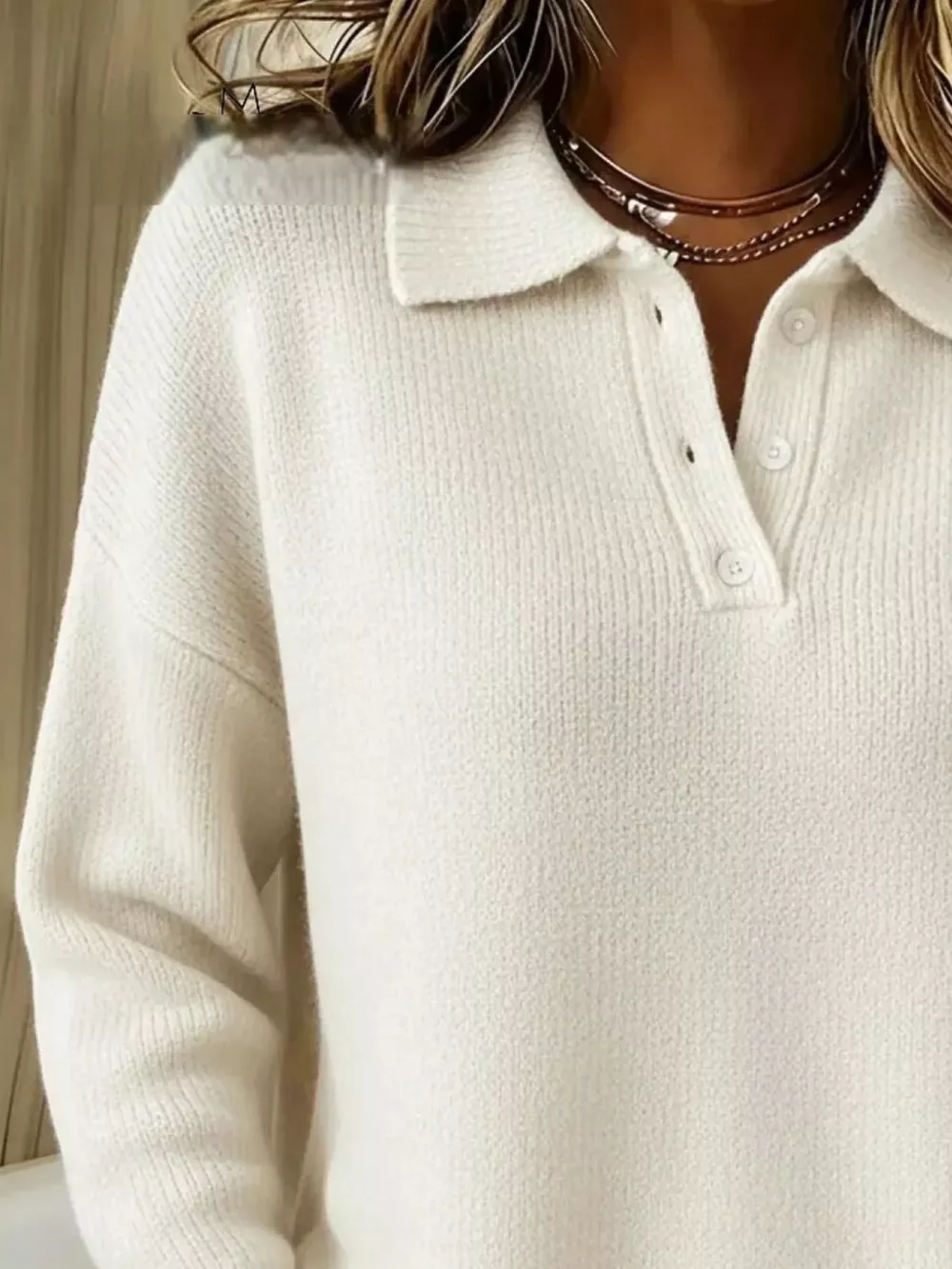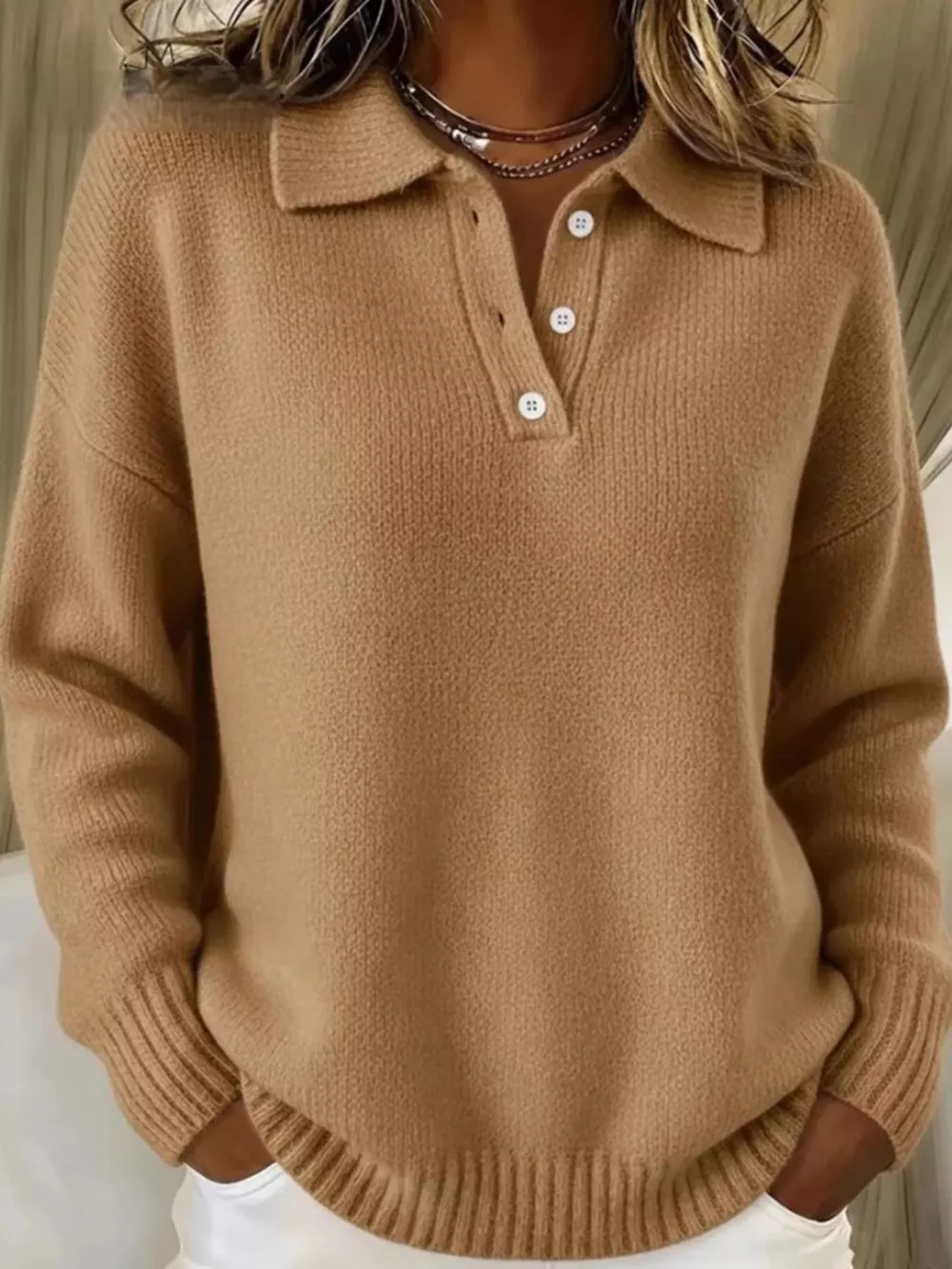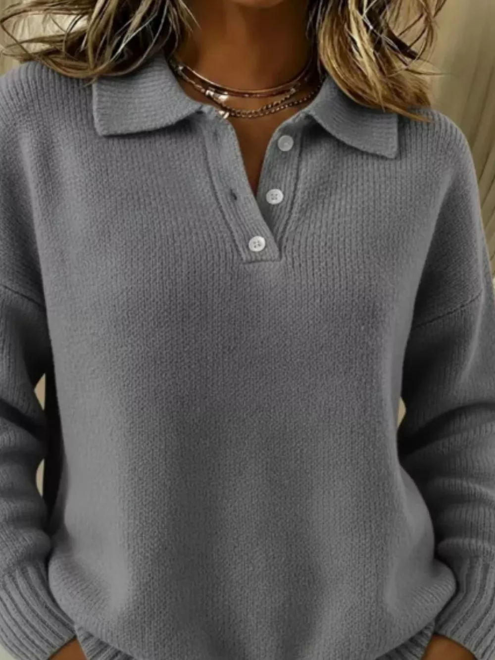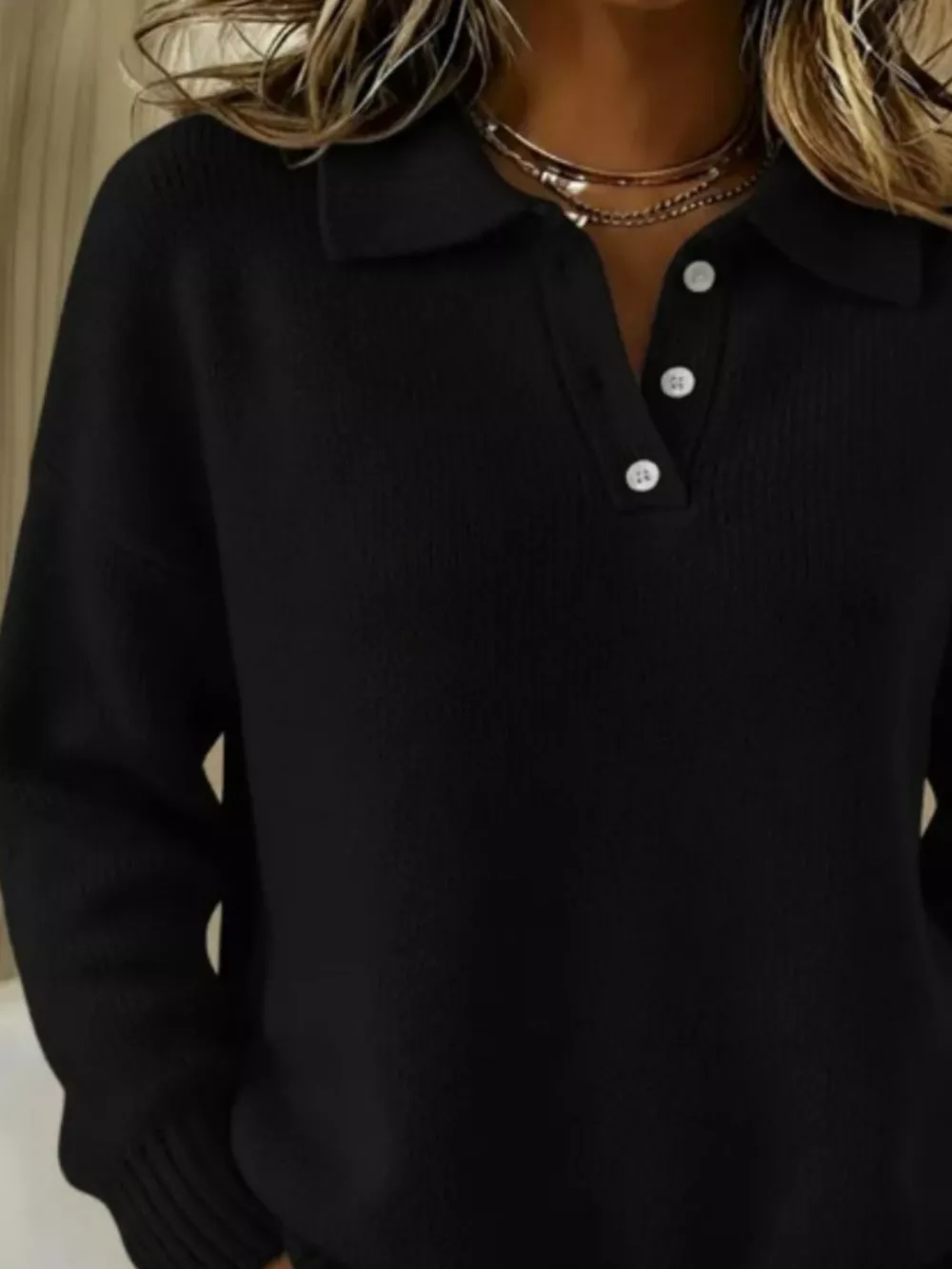 Full Size Half Button Collar Drop Shoulder Sweater Plus Size