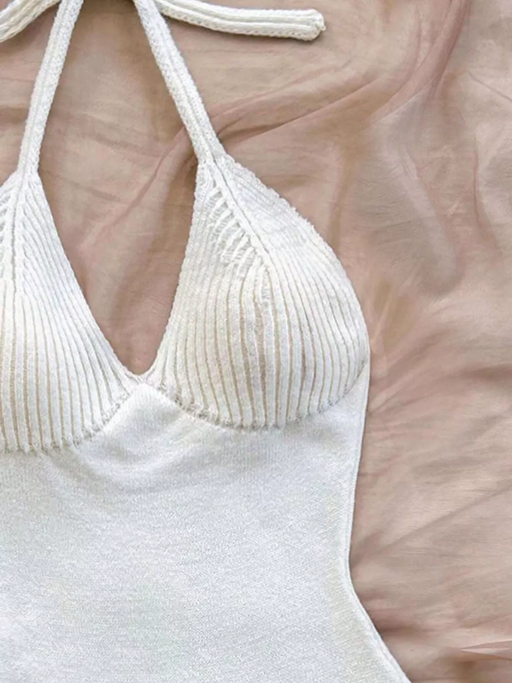Halter Neck Ruffle Hem Knit Sweater Dress