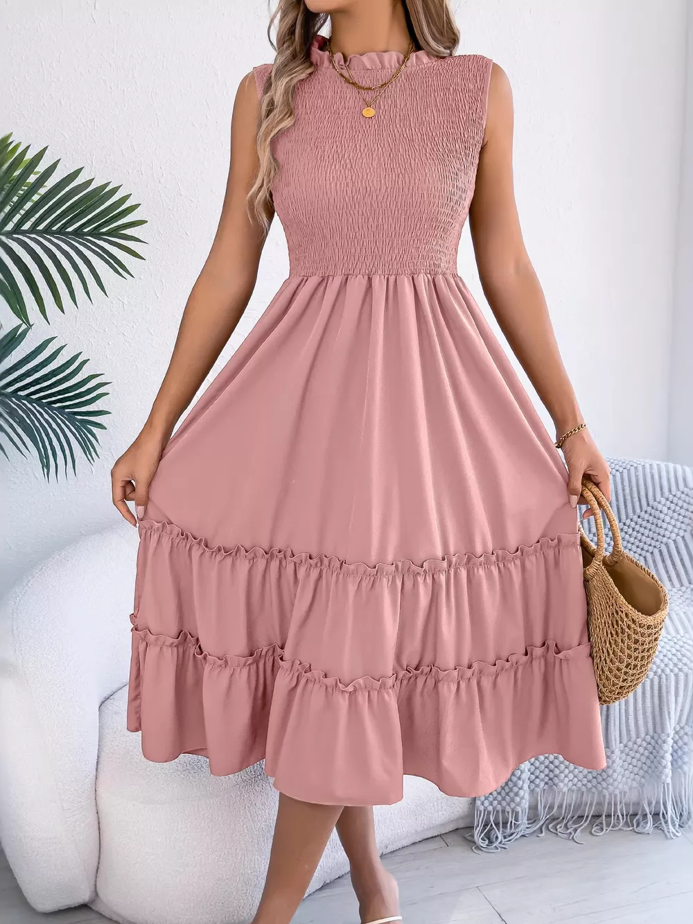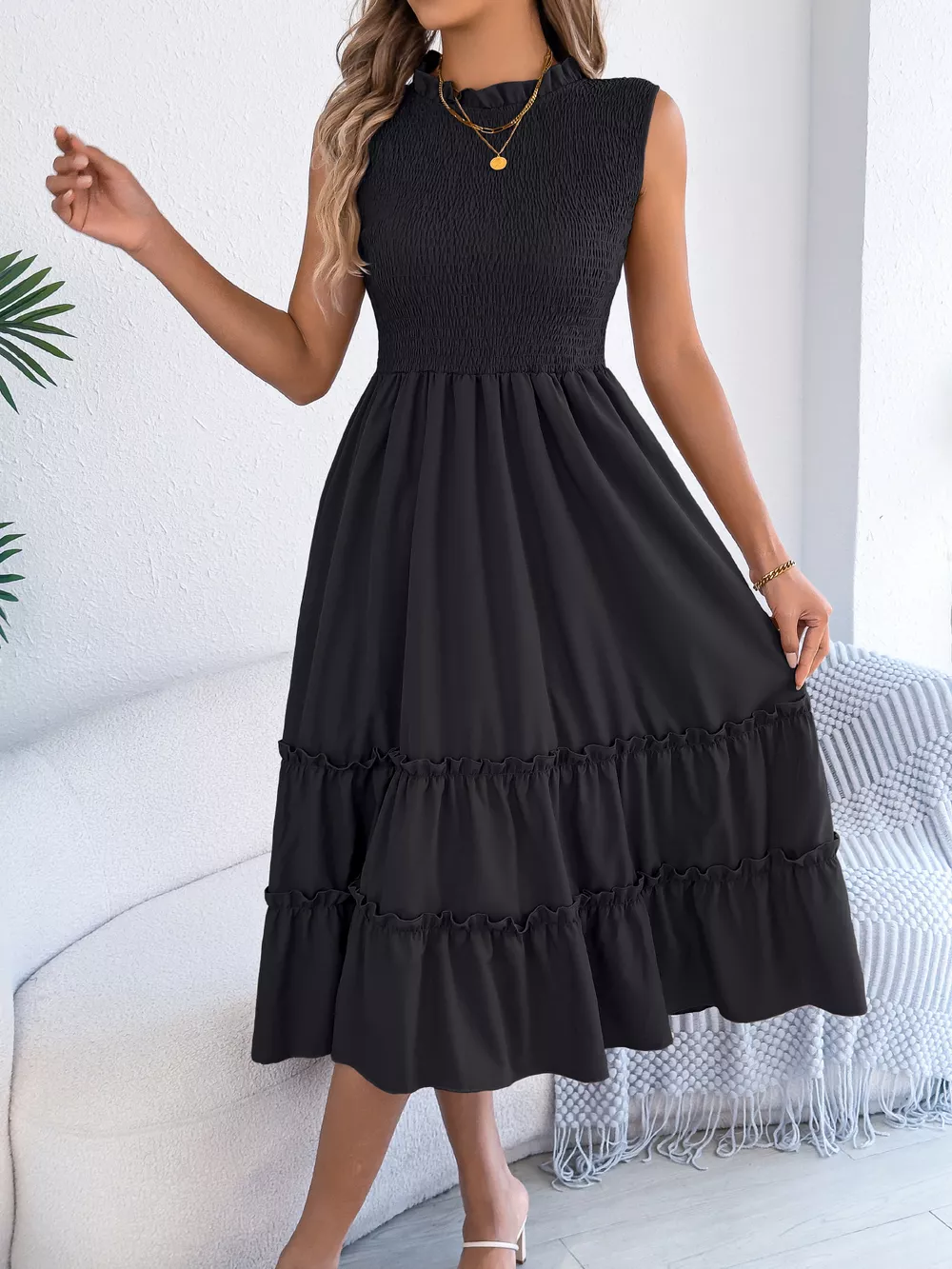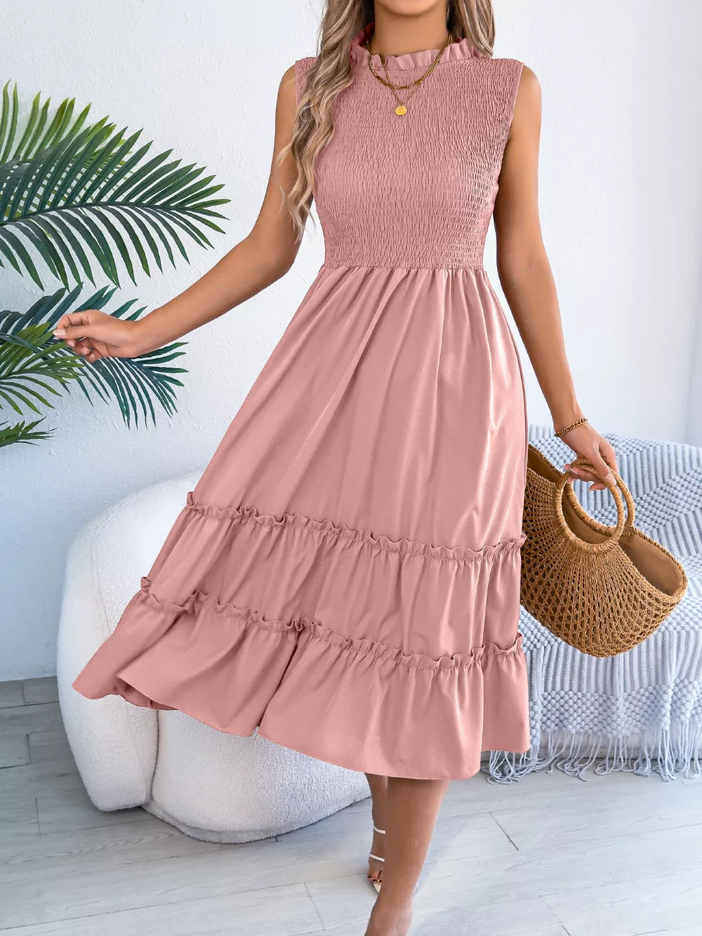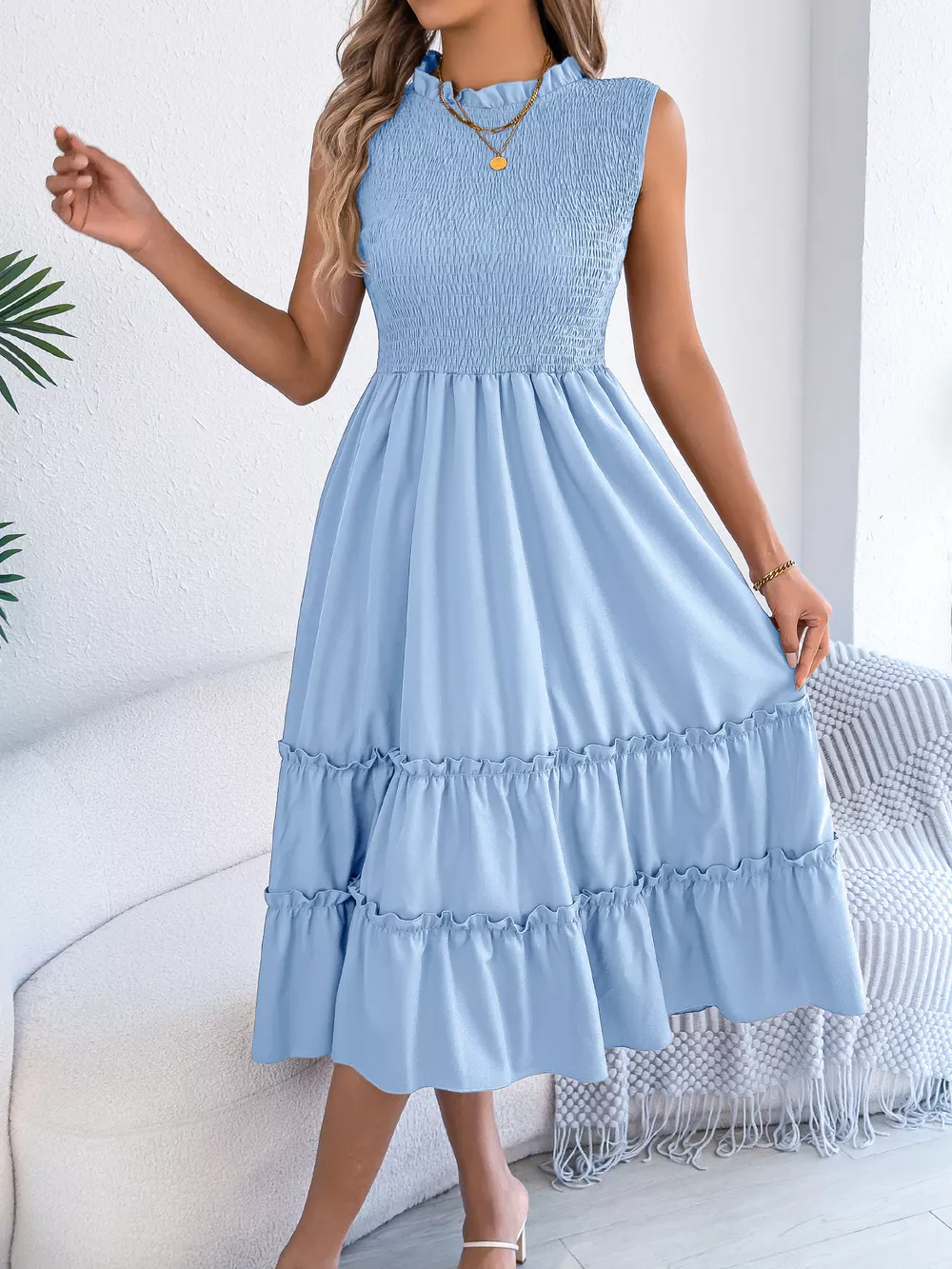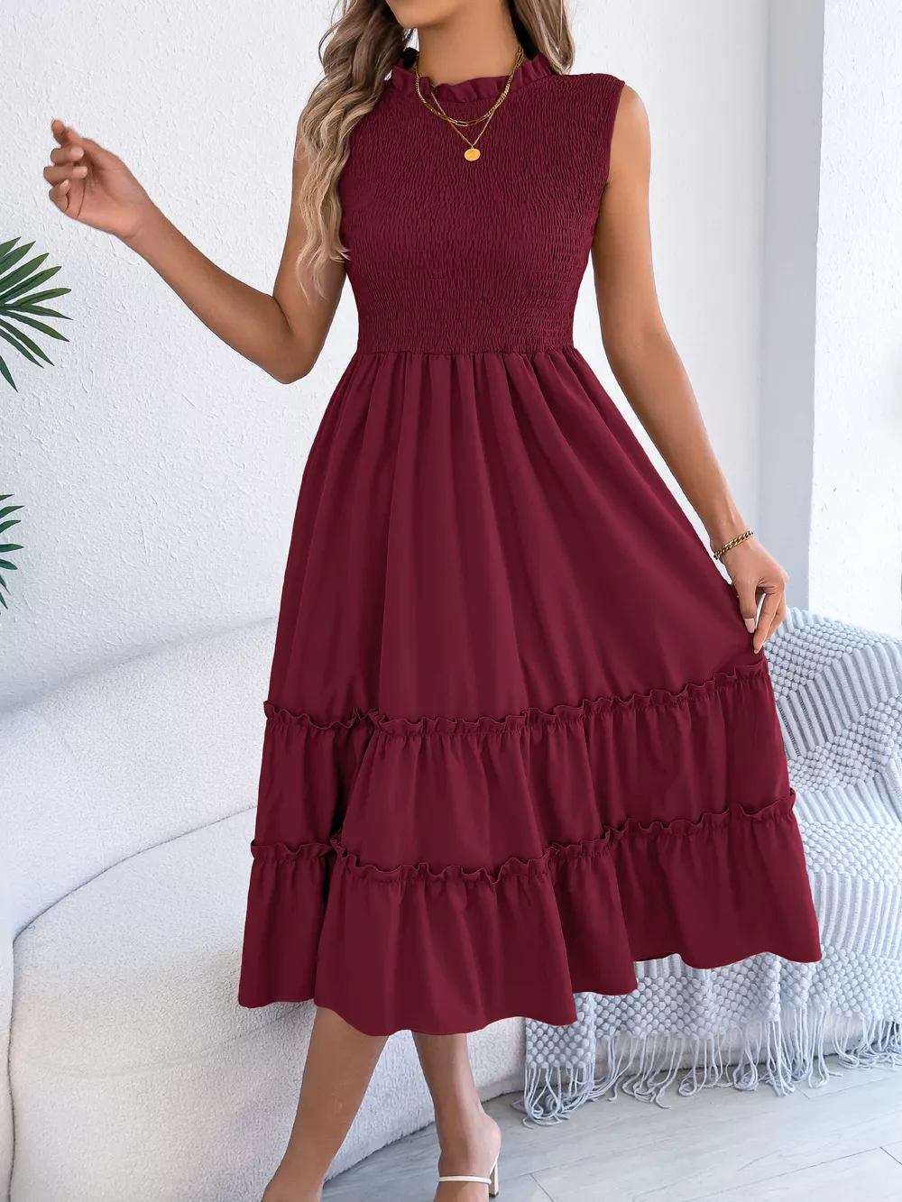 Smocked Sleeveless Tiered Dress
