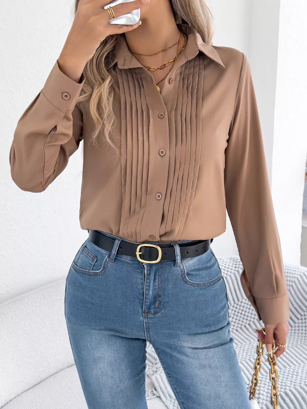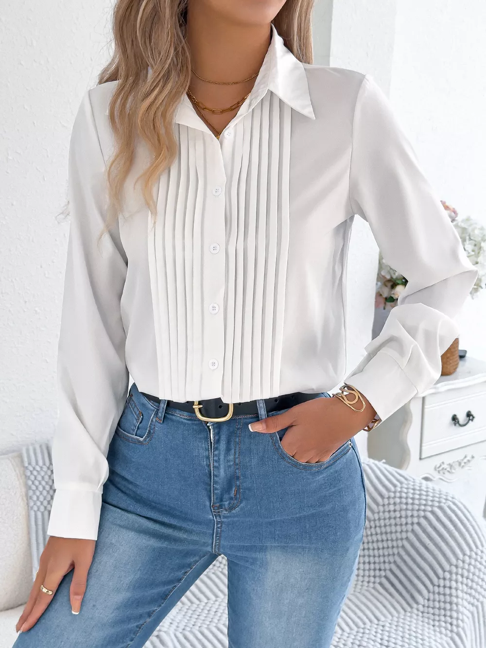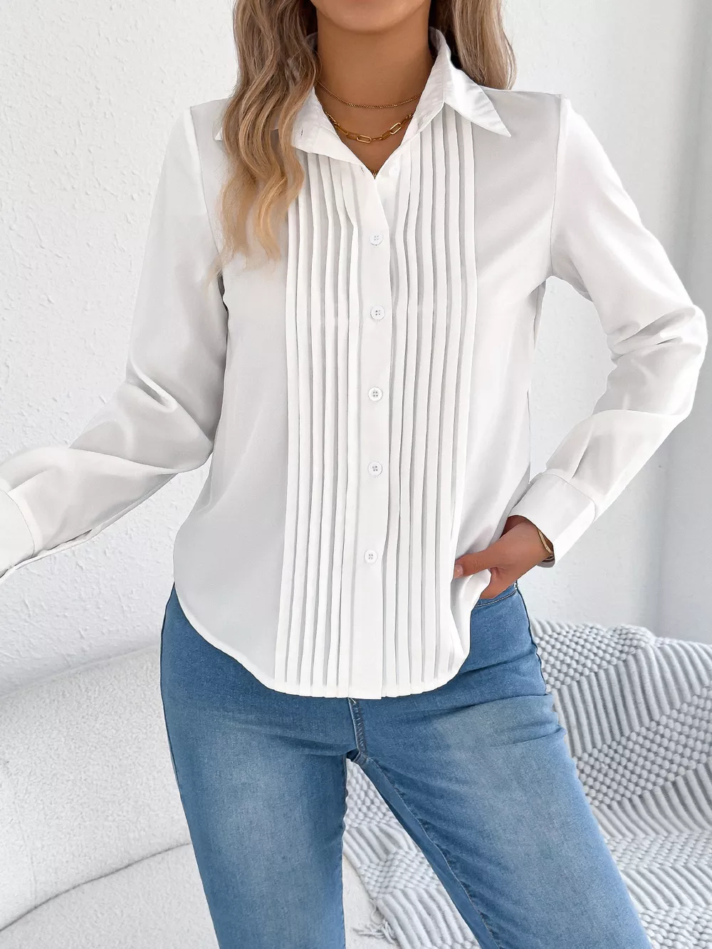 Pleated Front Long Sleeve Shirt