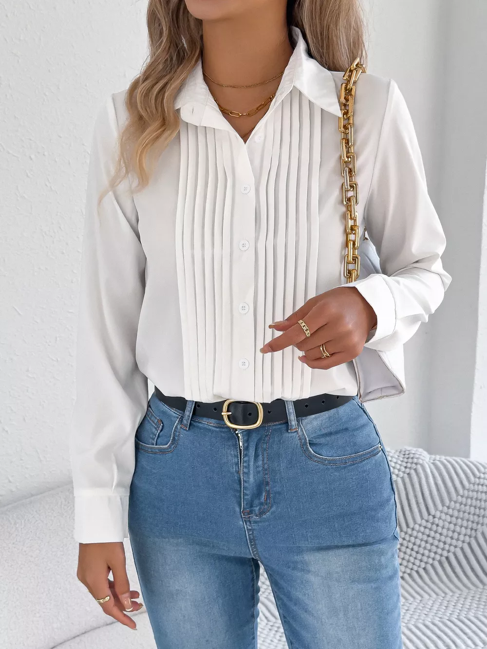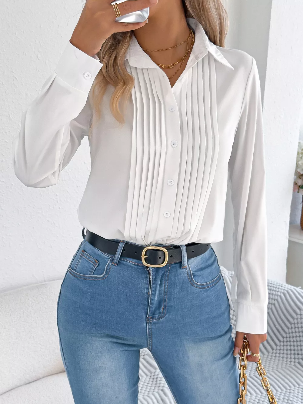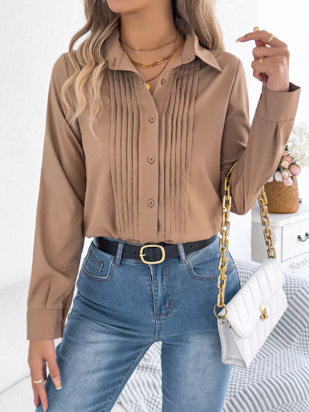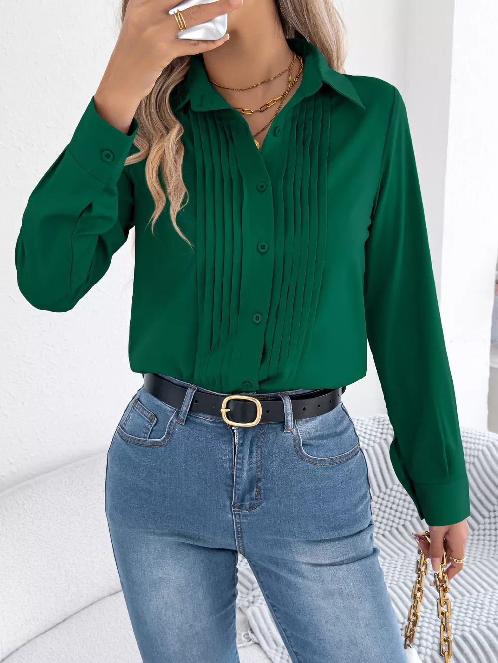 Pleated Front Long Sleeve Shirt