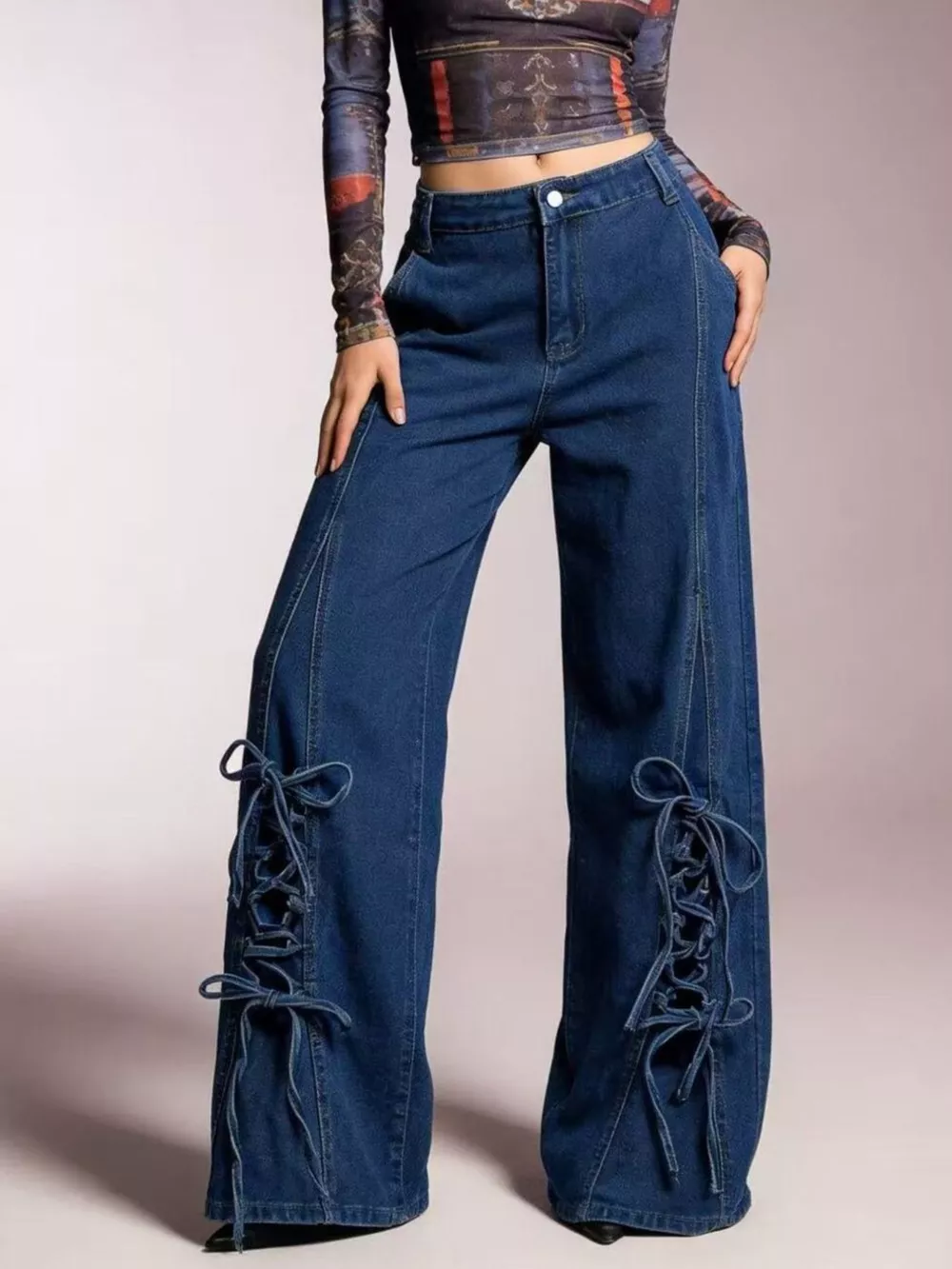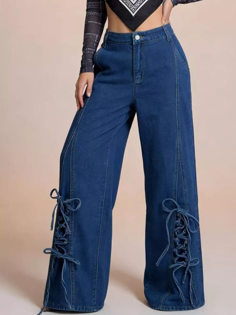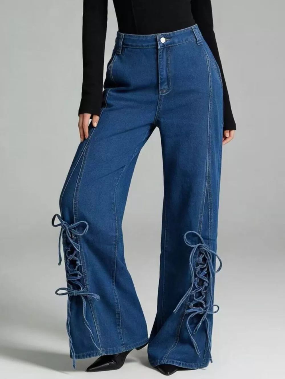 Lace-Up Wide Leg Jeans