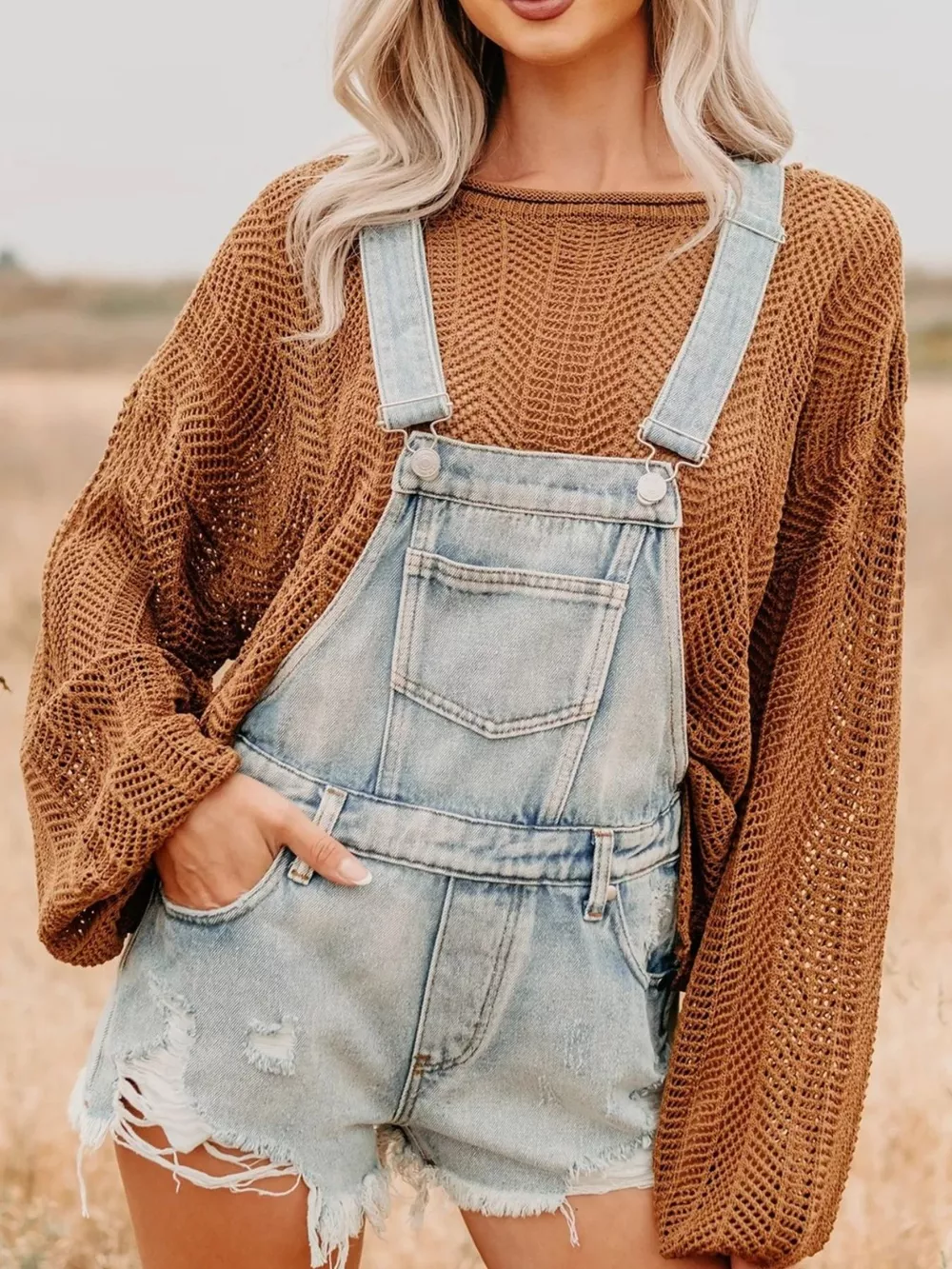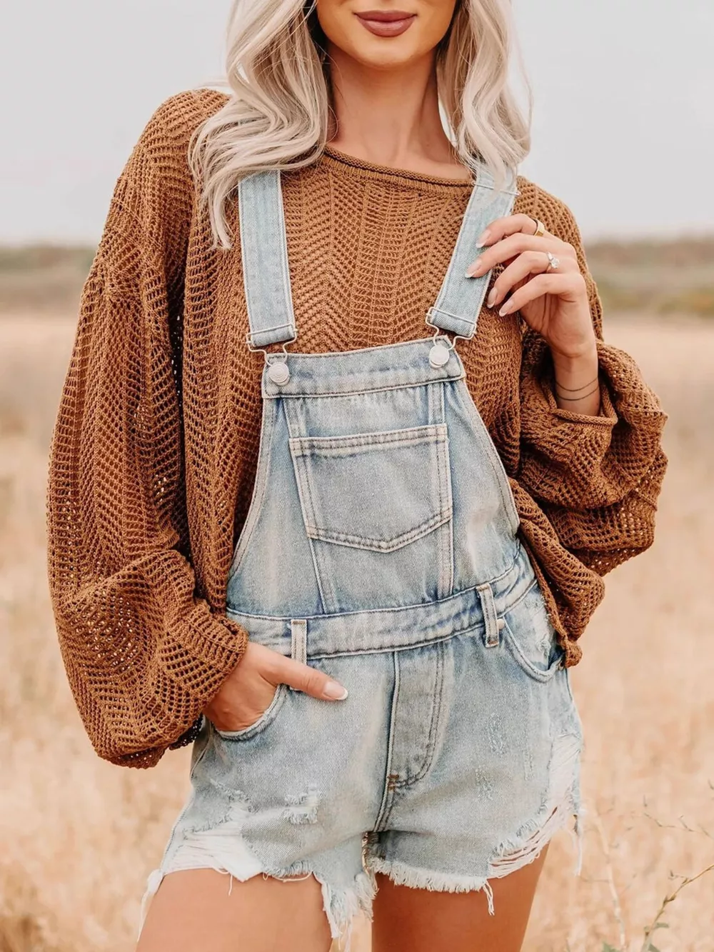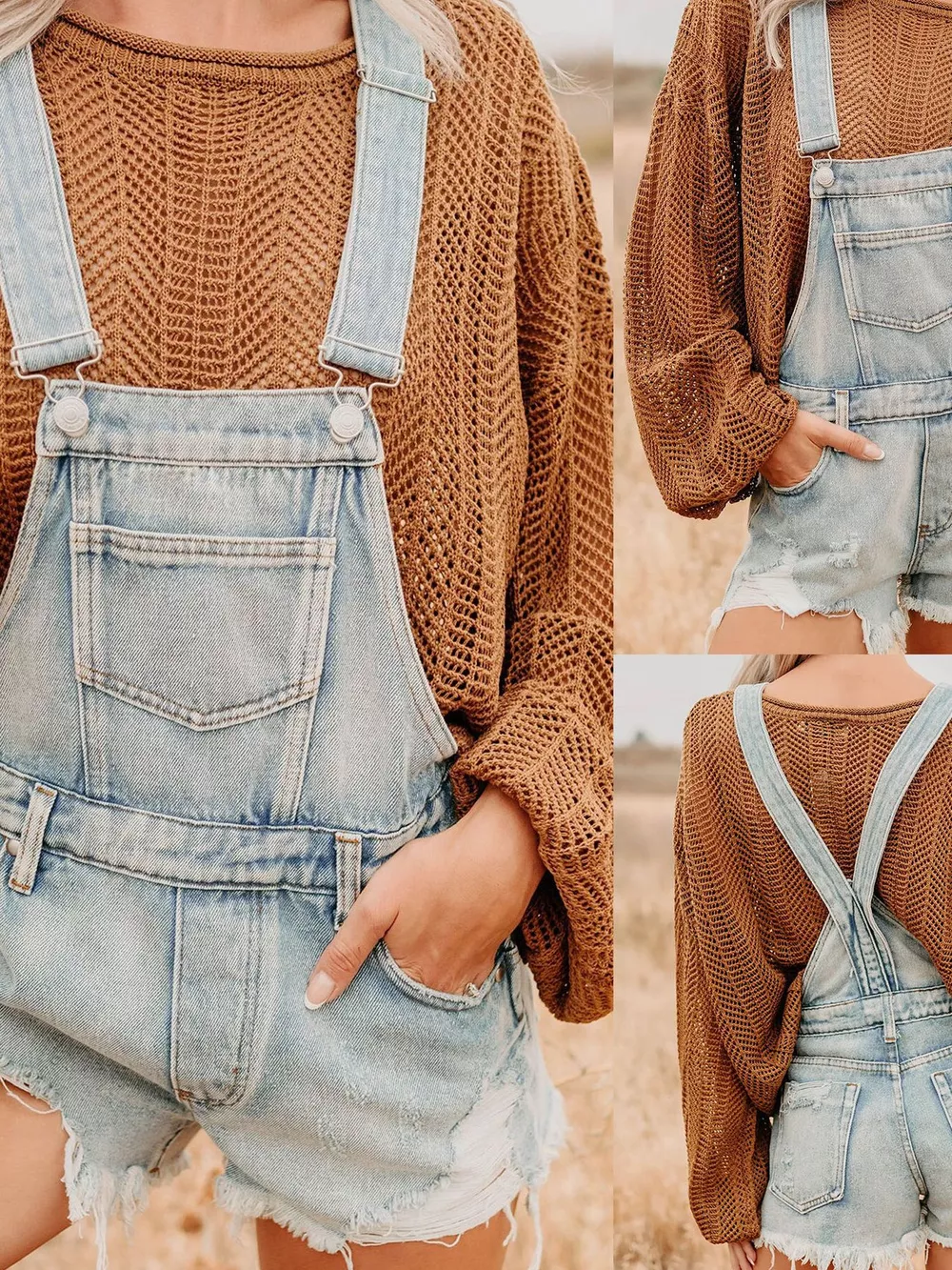 Distressed Denim Overalls Shorts