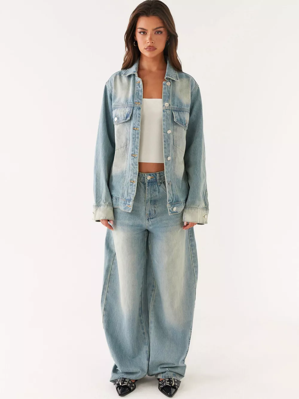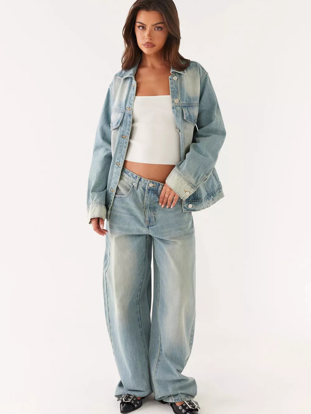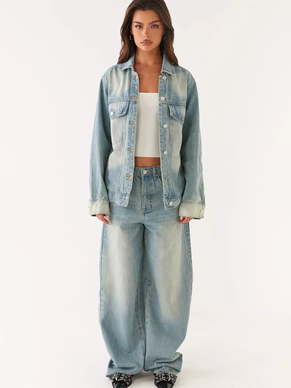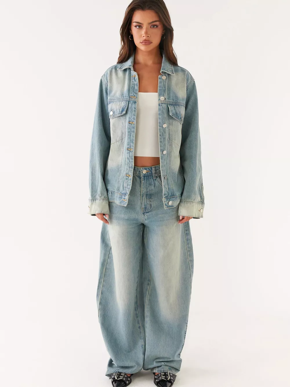 Button Up Denim Jacket and Jeans Set