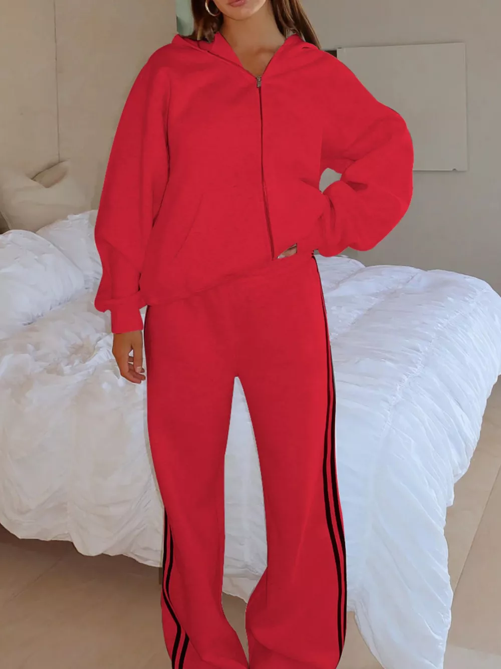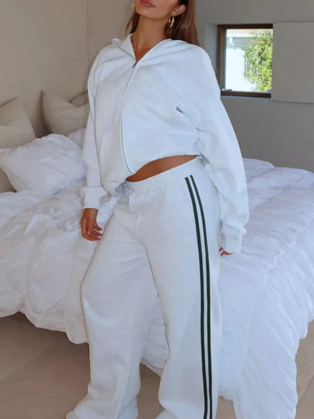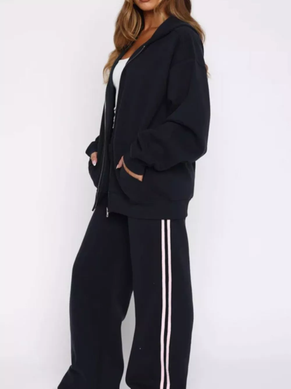 Zip Up Hoodie and Striped Pants Set