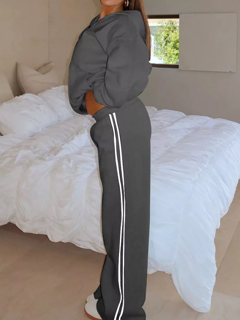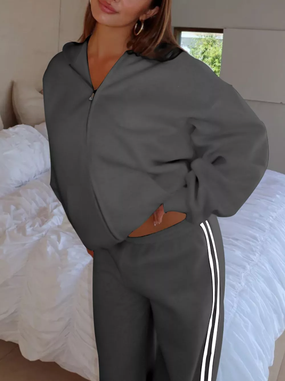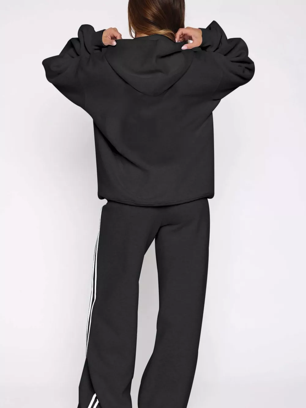 Zip Up Hoodie and Striped Pants Set