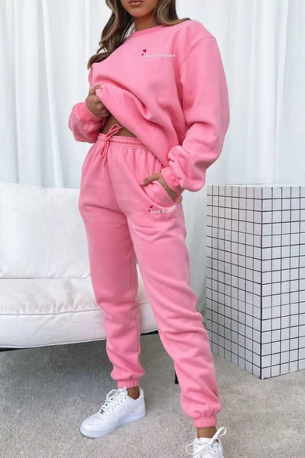 Round Neck Sweatshirt and Joggers Set