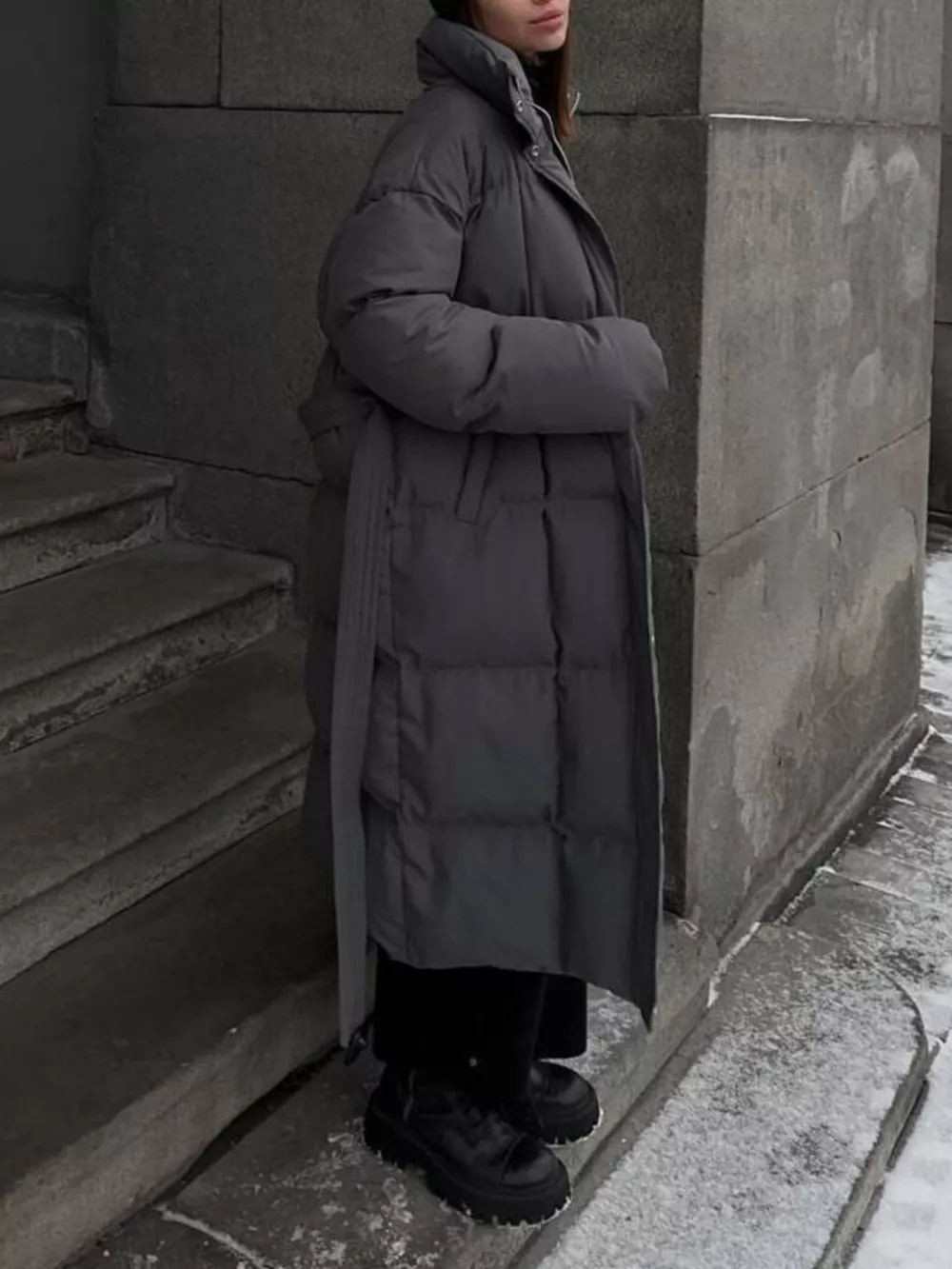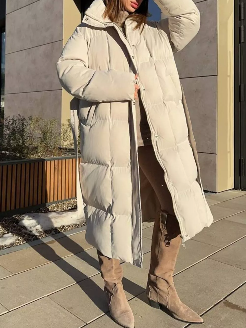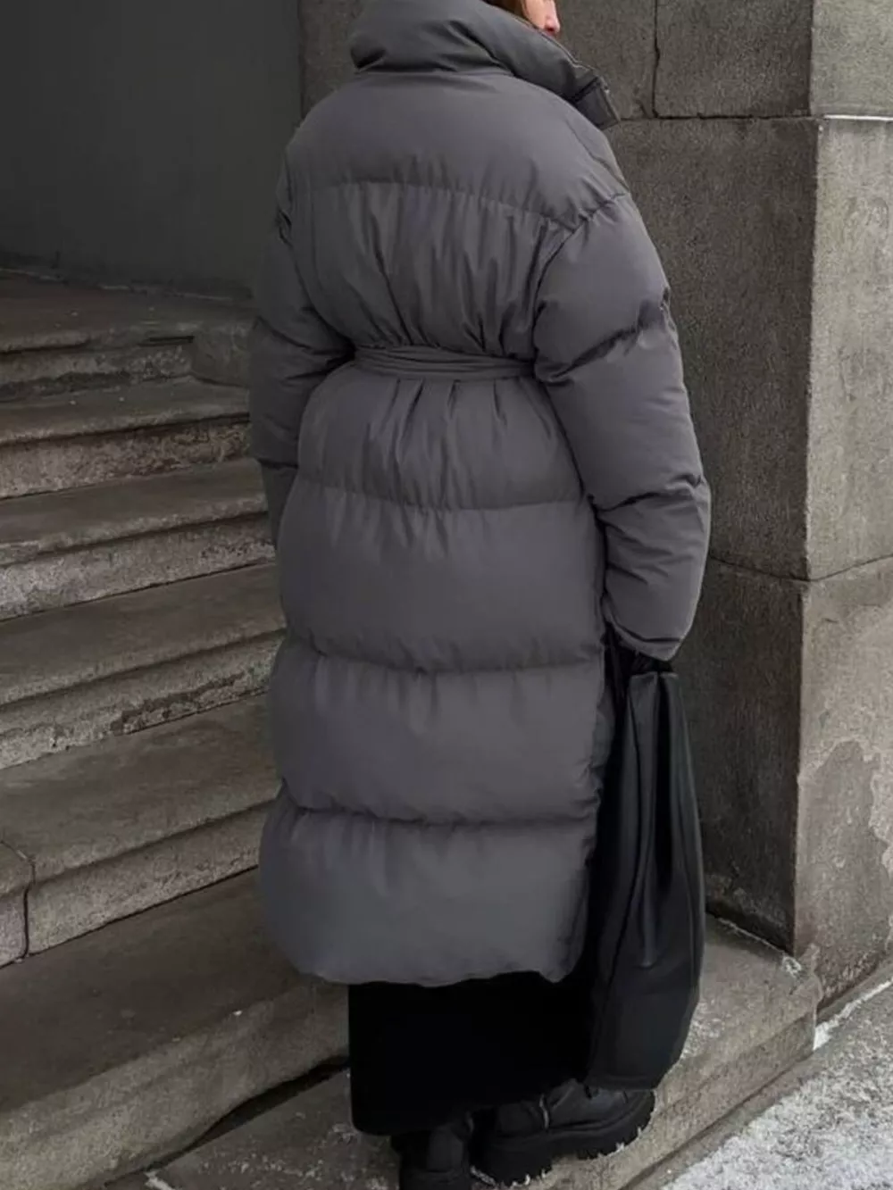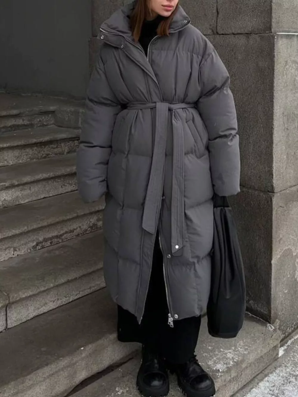 Longline Padded Winter Coat with Belted